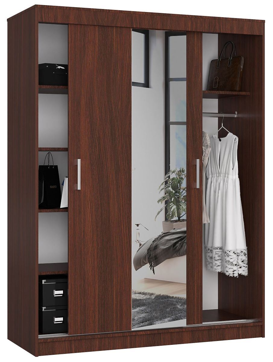 L'armadio scorrevole 150 cm CLP con specchio in colore wenge è un pezzo di arredamento molto interessante e, cosa più importante, pratico, che offre uno spazio ampio per riporre vari oggetti in modo ordinato. Grazie al suo aspetto classico ed elegante, si adatta perfettamente a molti interni, indipendentemente dal loro carattere. Questo modello di armadio può essere utilizzato con successo come parte dell'arredamento di una camera da letto, cabina armadio, ingresso o persino soggiorno. Tutto dipende dalle nostre preferenze individuali.
