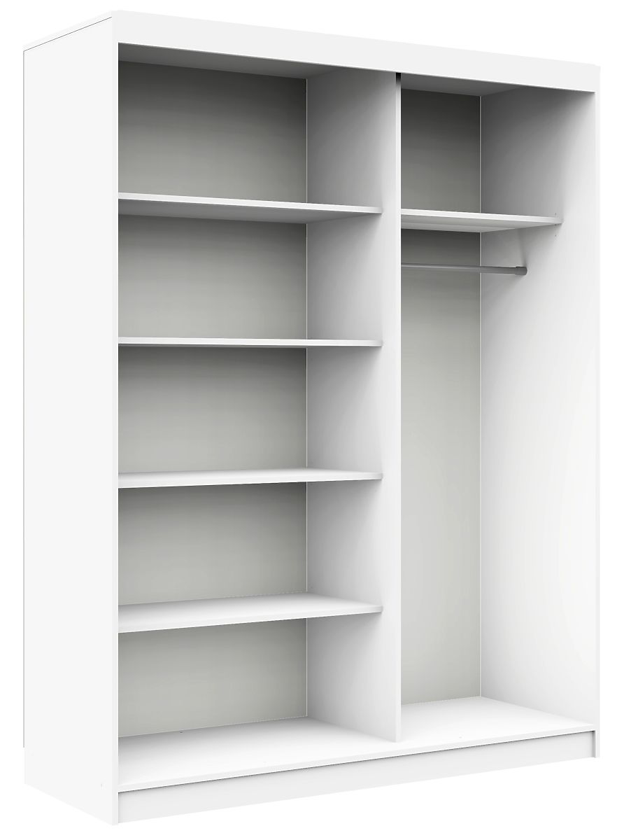 I mobili bianchi sono recentemente molto popolari e si adattano perfettamente agli interni moderni. Pertanto, nella nostra offerta non può mancare un armadio di questo colore. È un mobile funzionale progettato per due persone. L'armadio 150 cm CLP è adatto sia per la camera da letto e il soggiorno, sia per il salone. Vi sorprenderà per l'alta qualità della lavorazione.