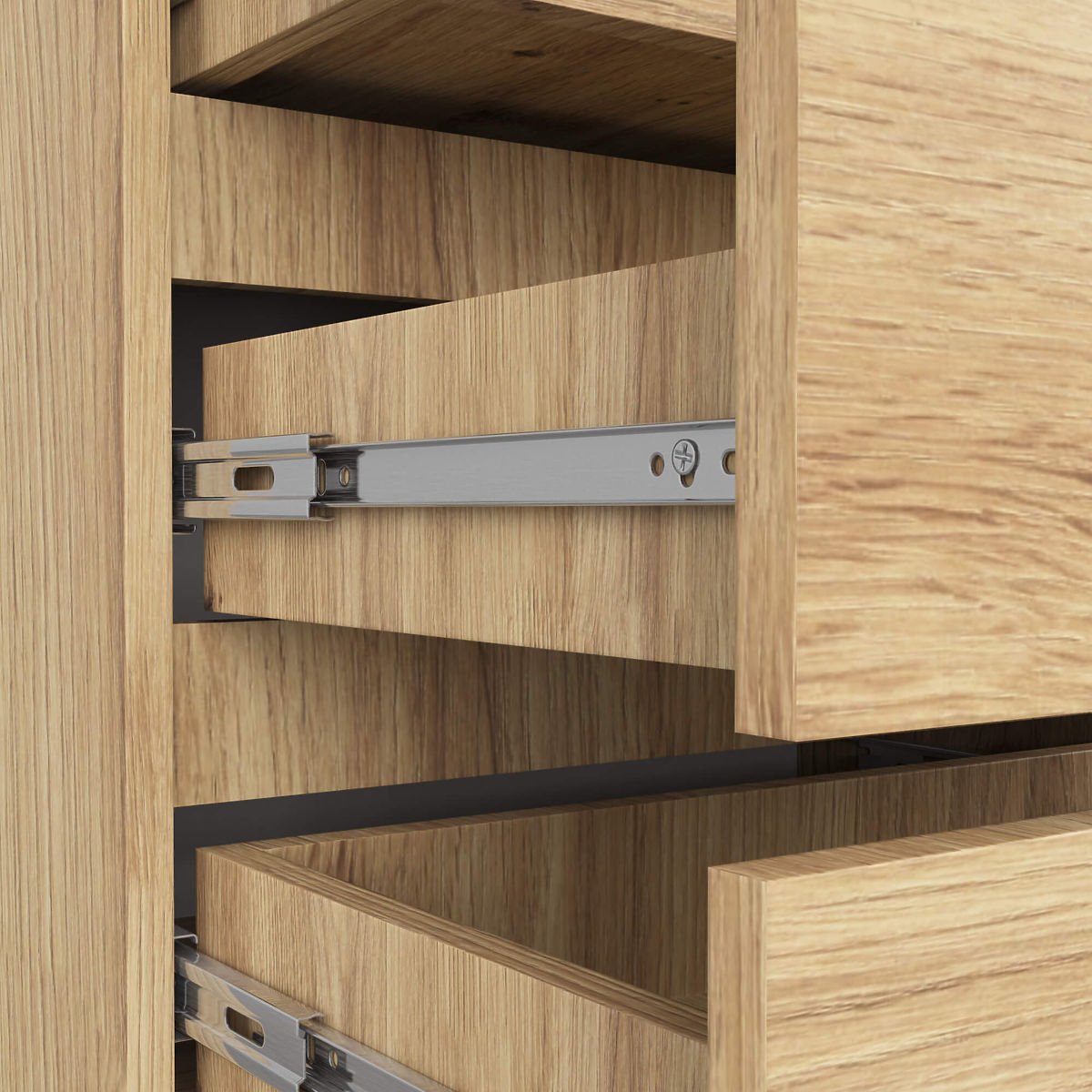 - Cassetti scorrevoli su guide a sfera in metallo