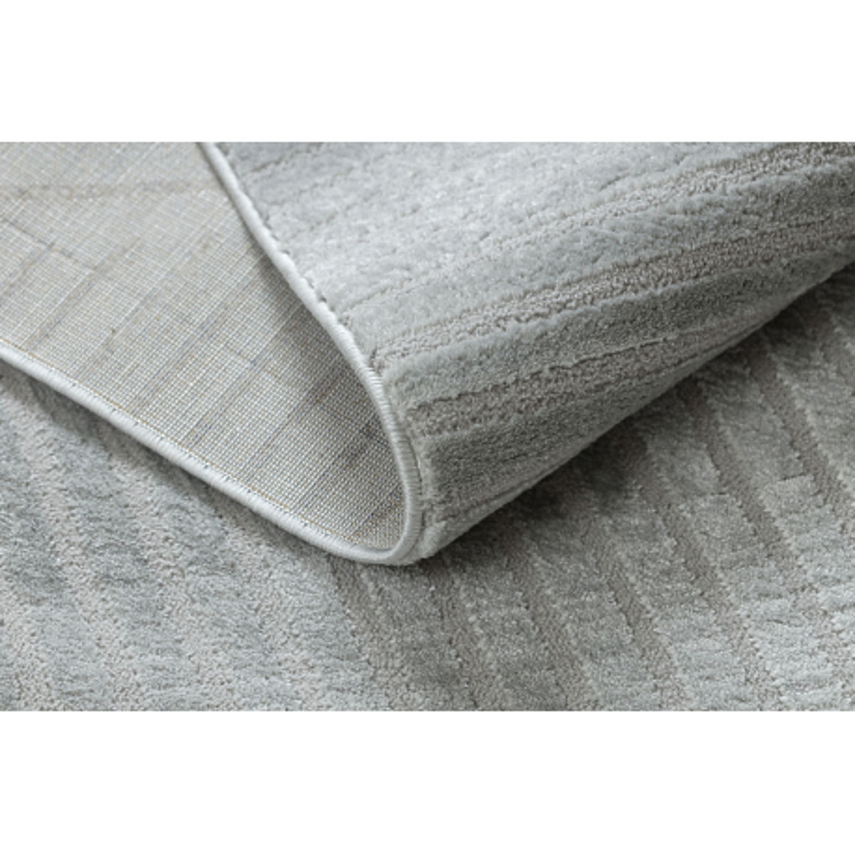 Tappeto grigio con motivo geometrico e effetto glamour. .. altro