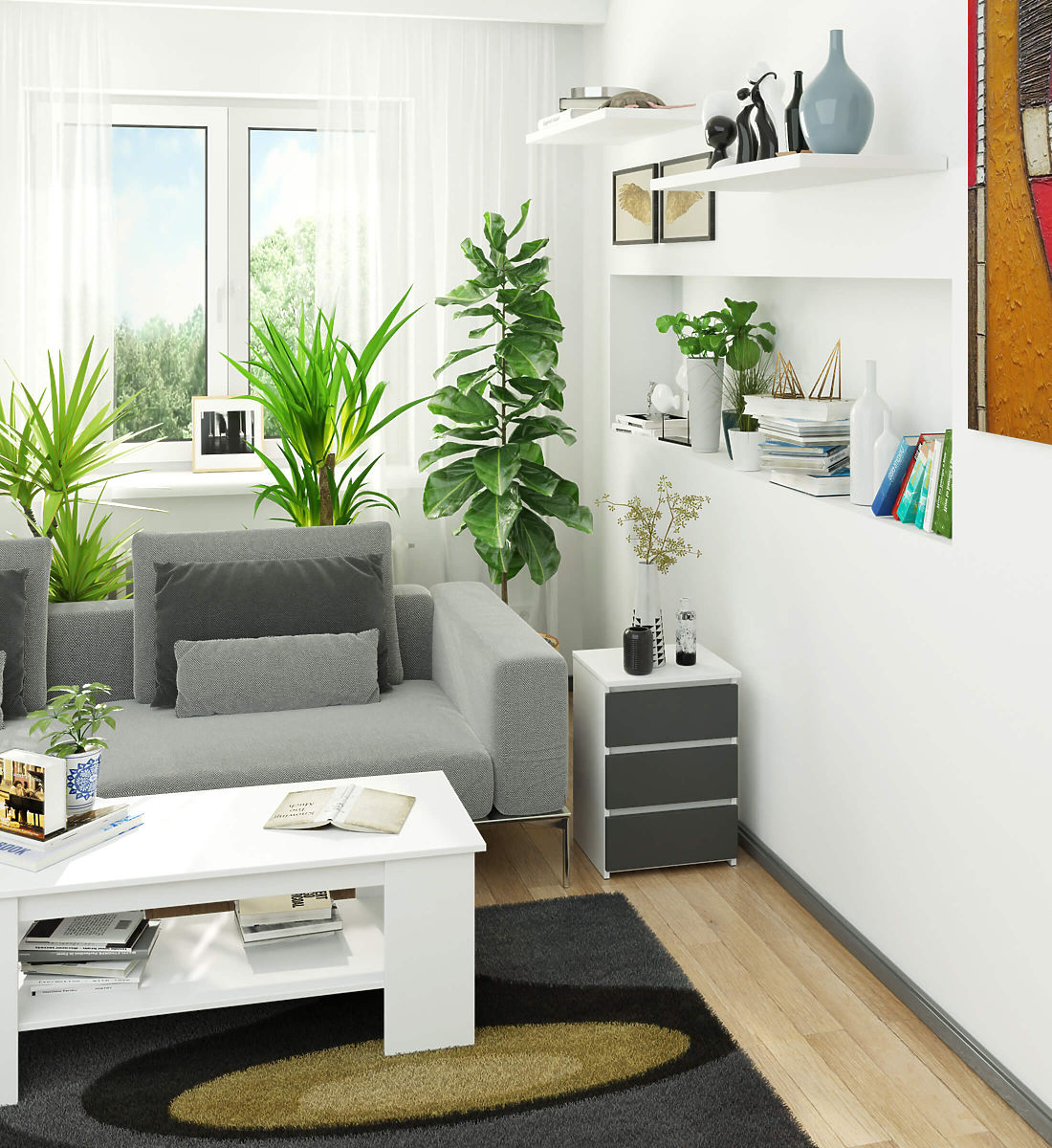 Comò CL3 40 cm bianco con frontali grigi per ogni camera da letto. .. altro