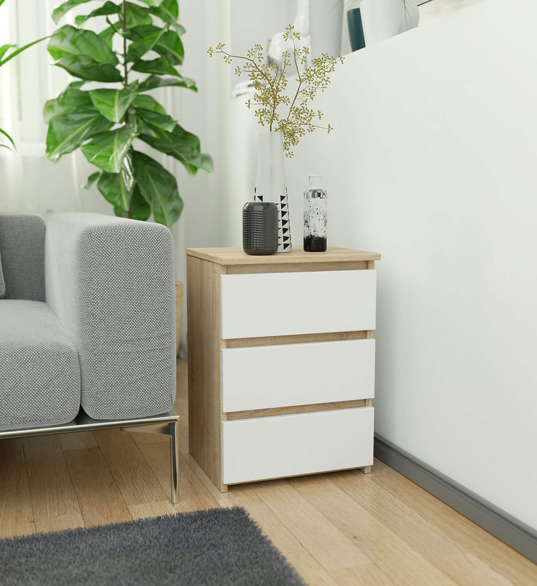 I comodini sono un tipo di arredamento popolare che si posiziona accanto al letto. Sulla sua superficie si trova spesso una lampada, mentre all'interno ci sono oggetti che facilitano il riposo e il sonno. Chi cerca un comò elegante dovrebbe prestare attenzione al comodino CL3 40 cm in colore rovere sonoma con frontali bianchi. Si distinguerà magnificamente in ogni camera da letto. Può essere posizionato anche nella stanza dei bambini.