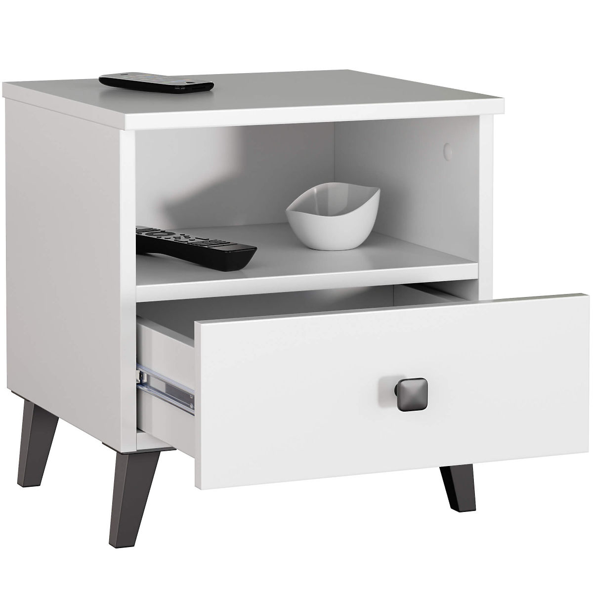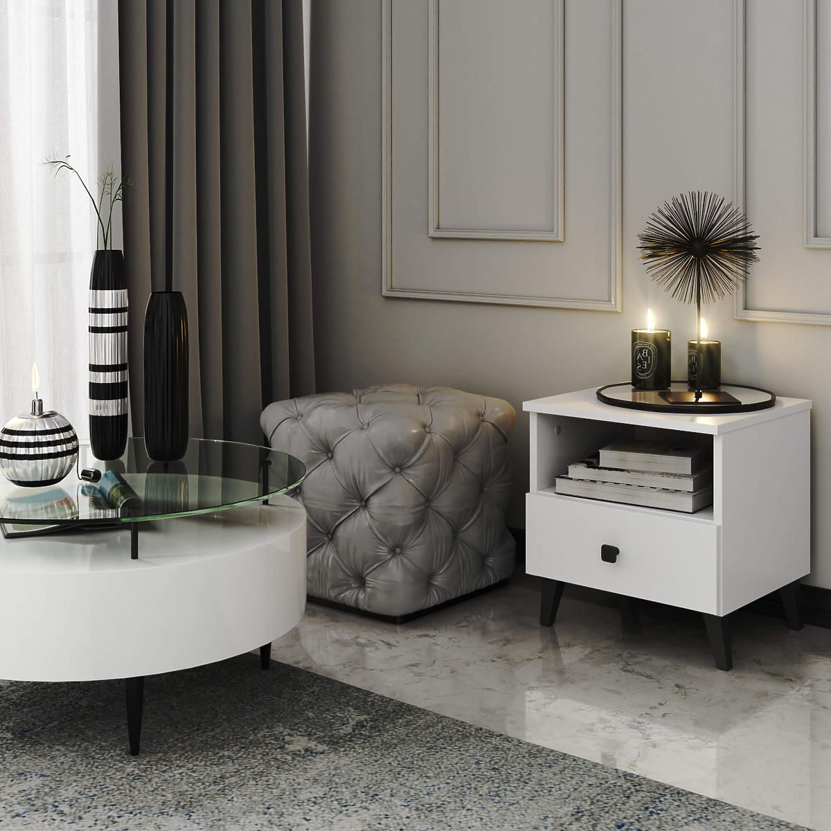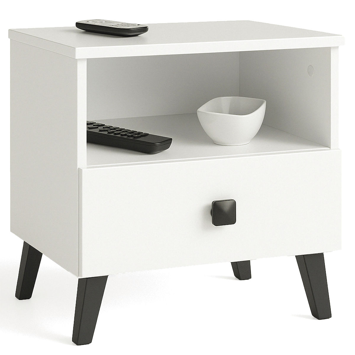 Comodino bianco e nero MOBI K01 con cassetto e nicchia. .. altro