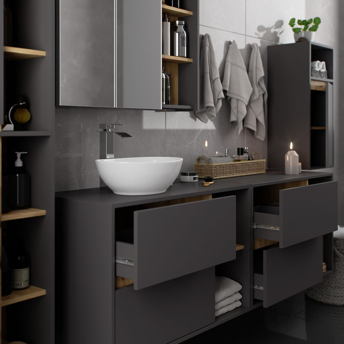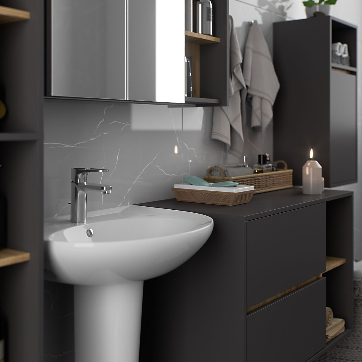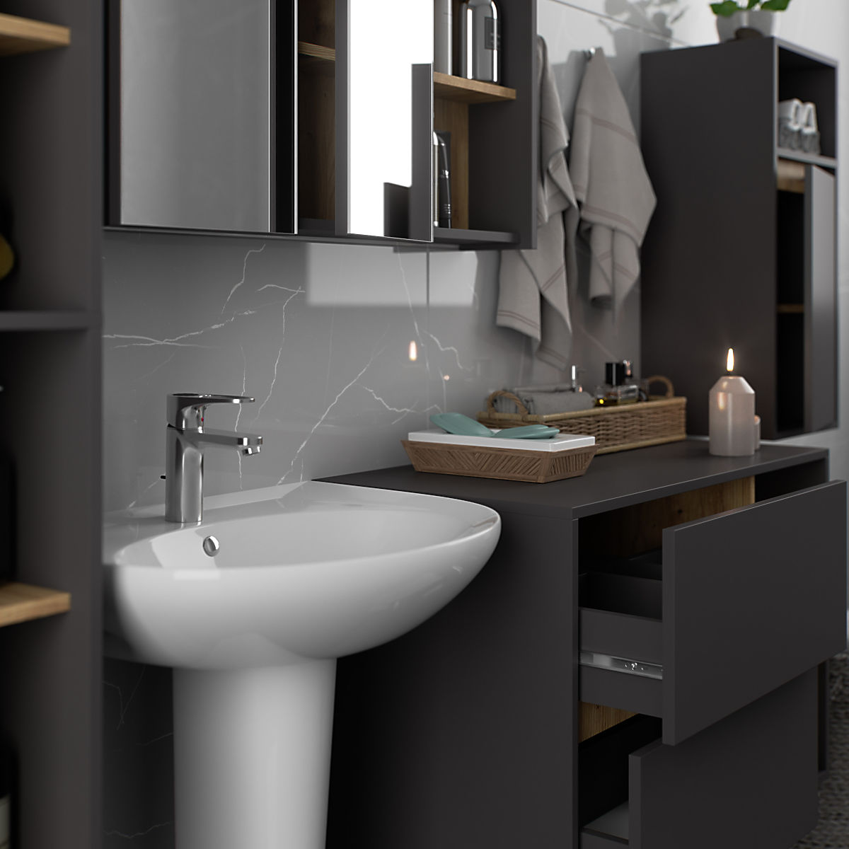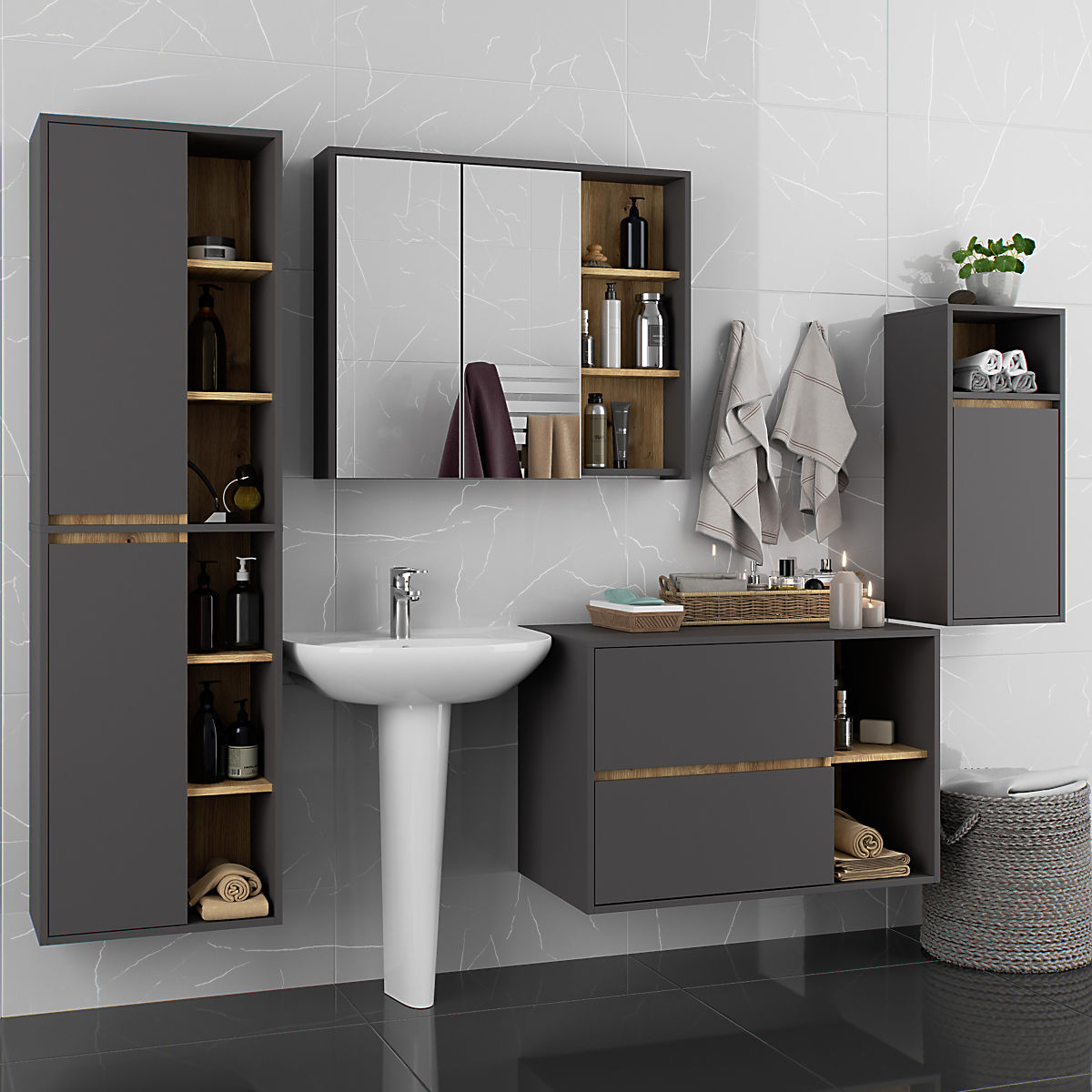 Lukahome.it » Bathroom & Toilet / Bagno armadietti / ARMADIETTO DA BAGNO SOSPESO VAMI W35 1D 1W GRAFITE GRIGIO / ROVERE ARTIGIANO
