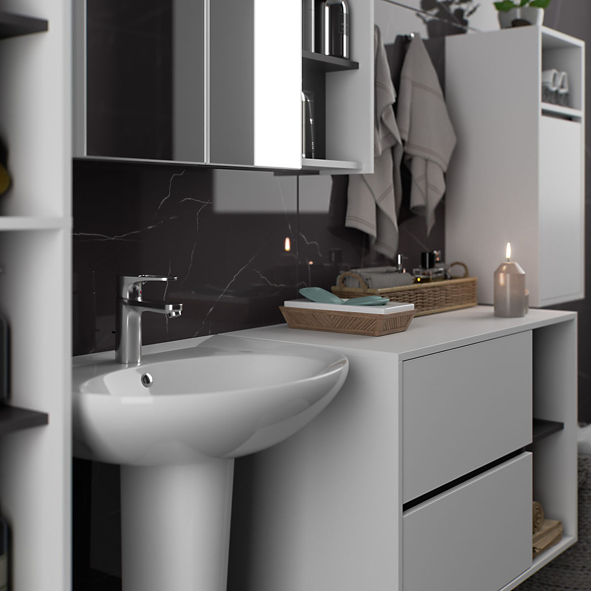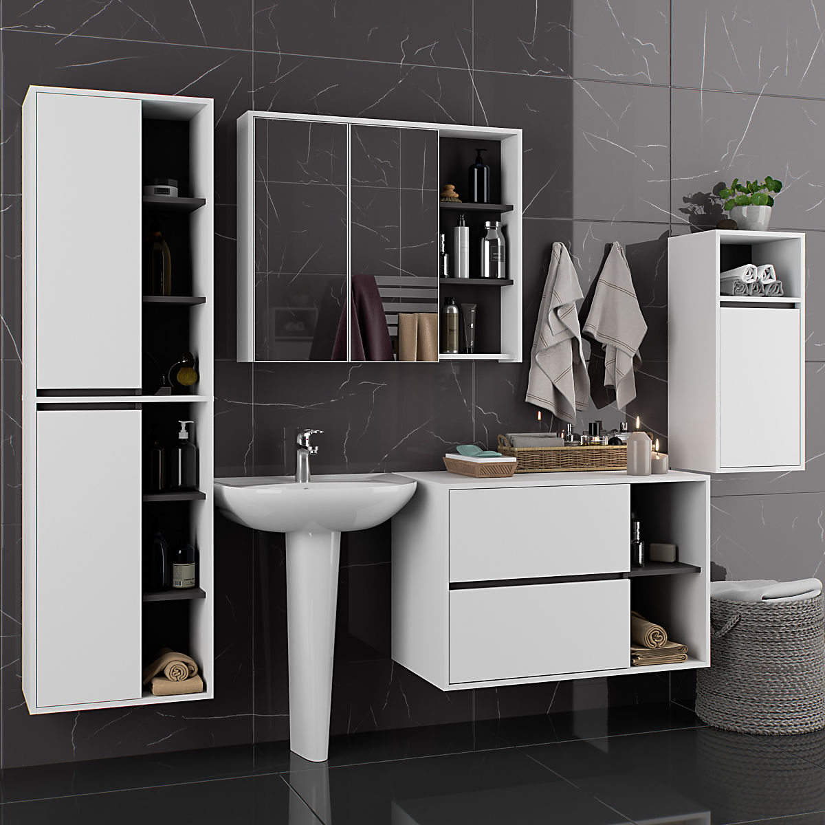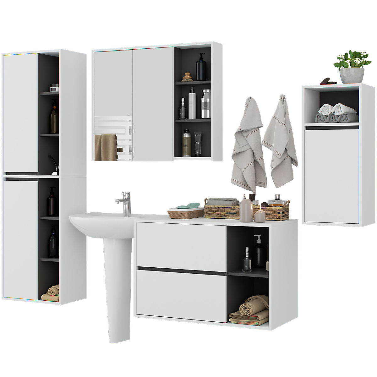 Lukahome.it » Bagno e toilette / Set da bagno / SET DI MOBILI DA BAGNO SOSPESI VAMI BIANCO / GRIGIO GRAFITE