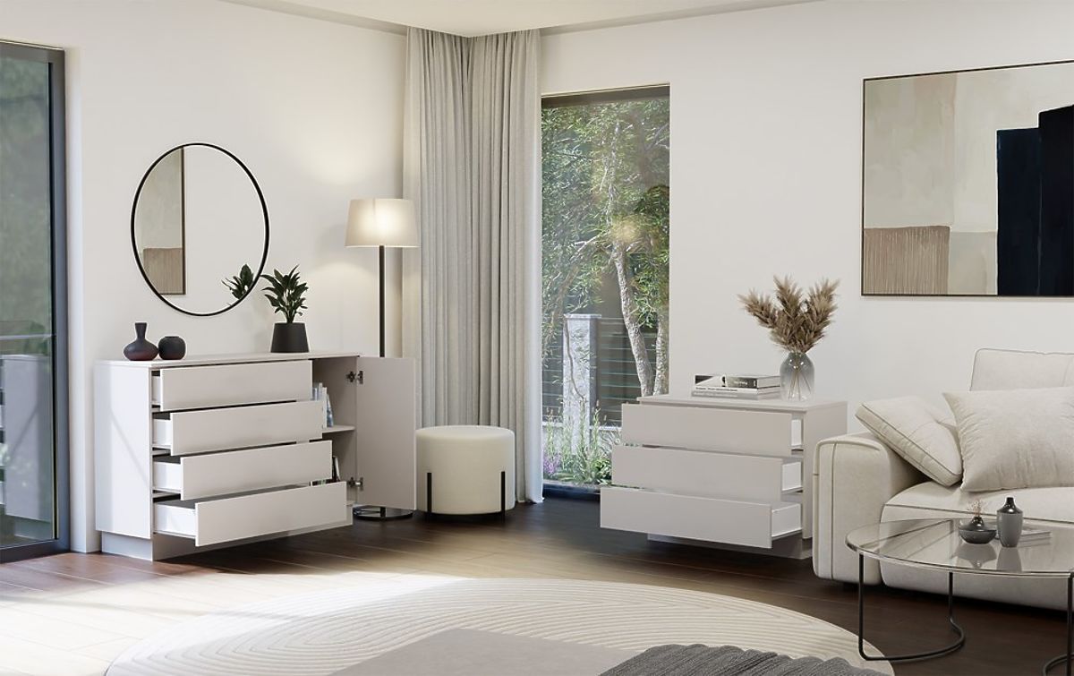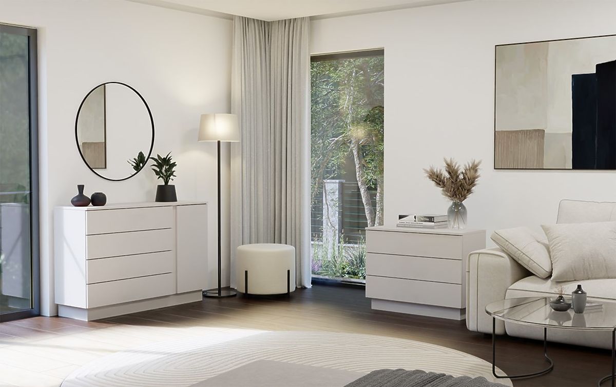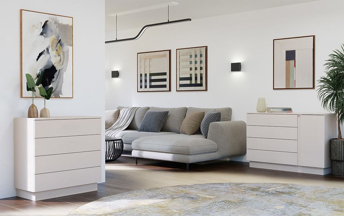 Lukahome.it » Mobilia / Cassettiere / Cassettiera AMBER 1D4S Armadietto 1 Porta 4 Cassetti per Camera da Letto Soggiorno CASHMERE Beige