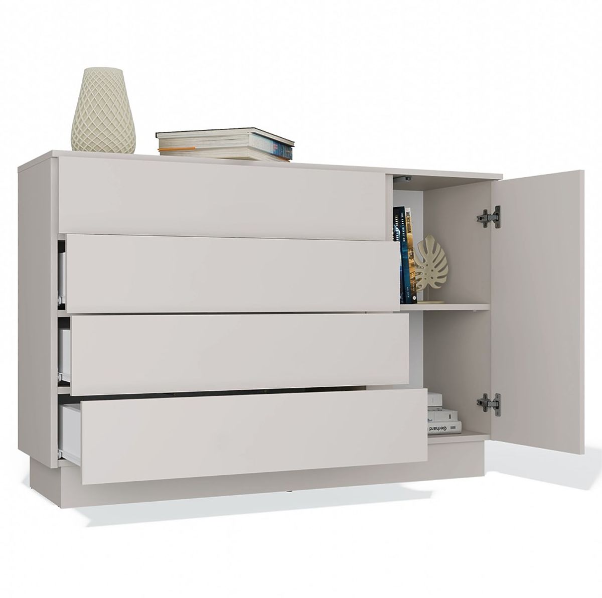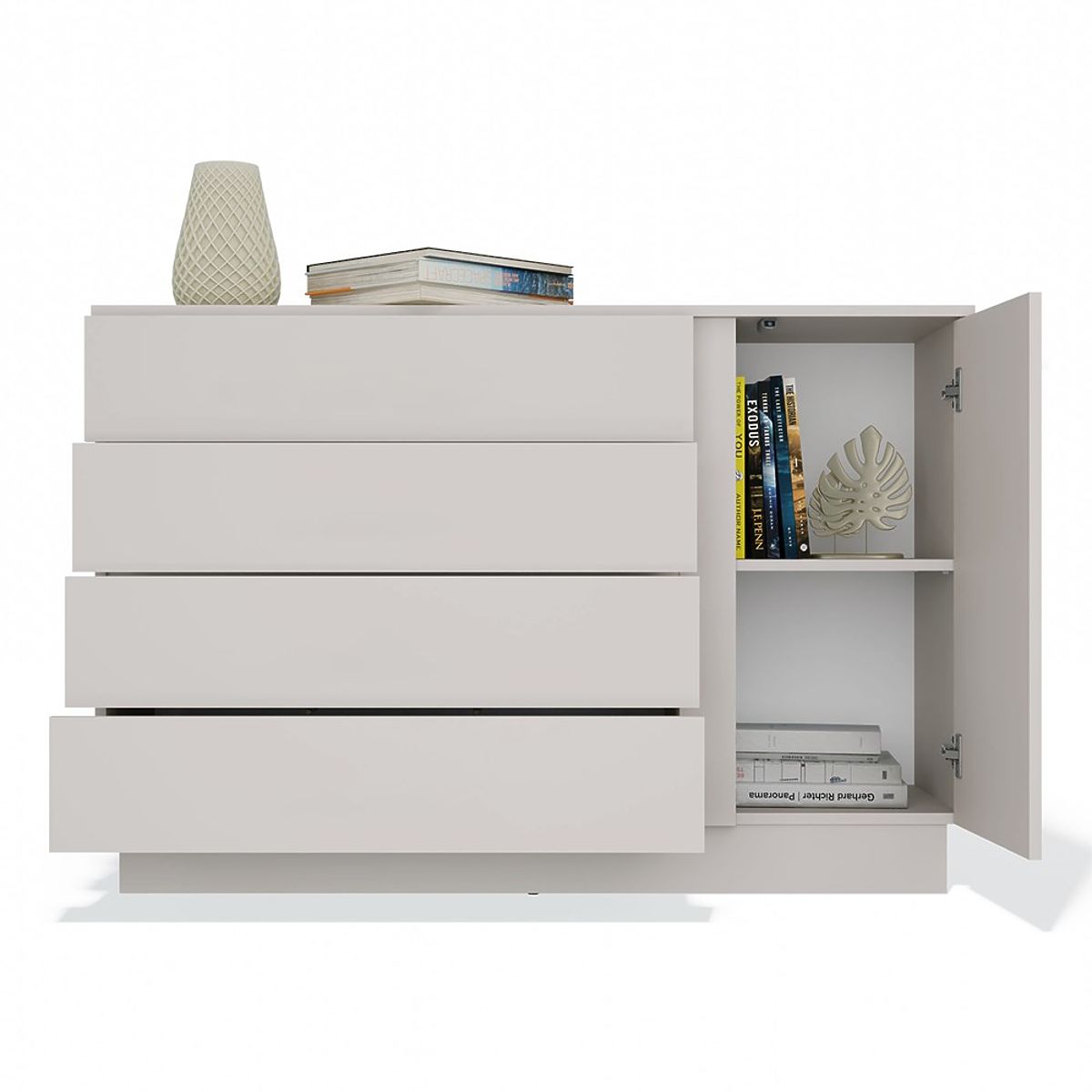 Cassettiera moderna AMBER 1D4S con 1 porta e 4 cassetti in colore cashmere. .. altro