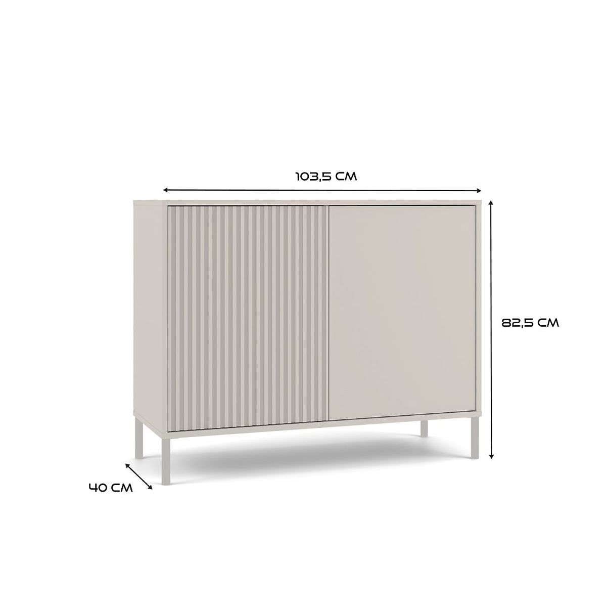 COLORE:La cassettiera KAMARO 2D SLIM/LISCIO CASHMERE è una combinazione di estetica e funzionalità, ideale per il soggiorno, la camera degli ospiti, la camera da letto o l'ufficio. Grazie alla combinazione di un pannello frontale liscio con uno a lamelle, il mobile acquisisce un aspetto moderno e originale, perfetto per interni contemporanei.