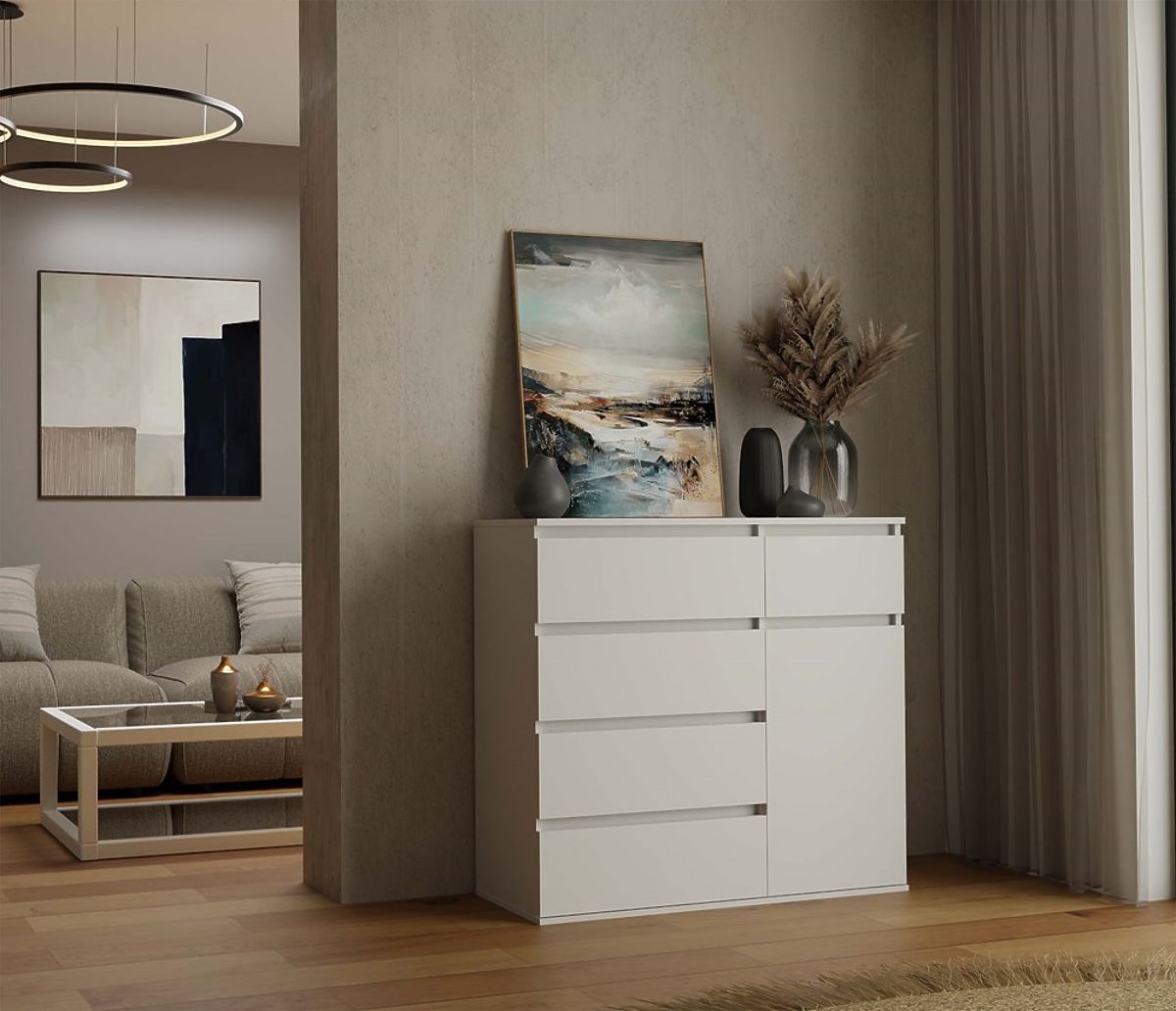 Cassettiera bianca con 1 porta e 5 cassetti spaziosi. .. altro