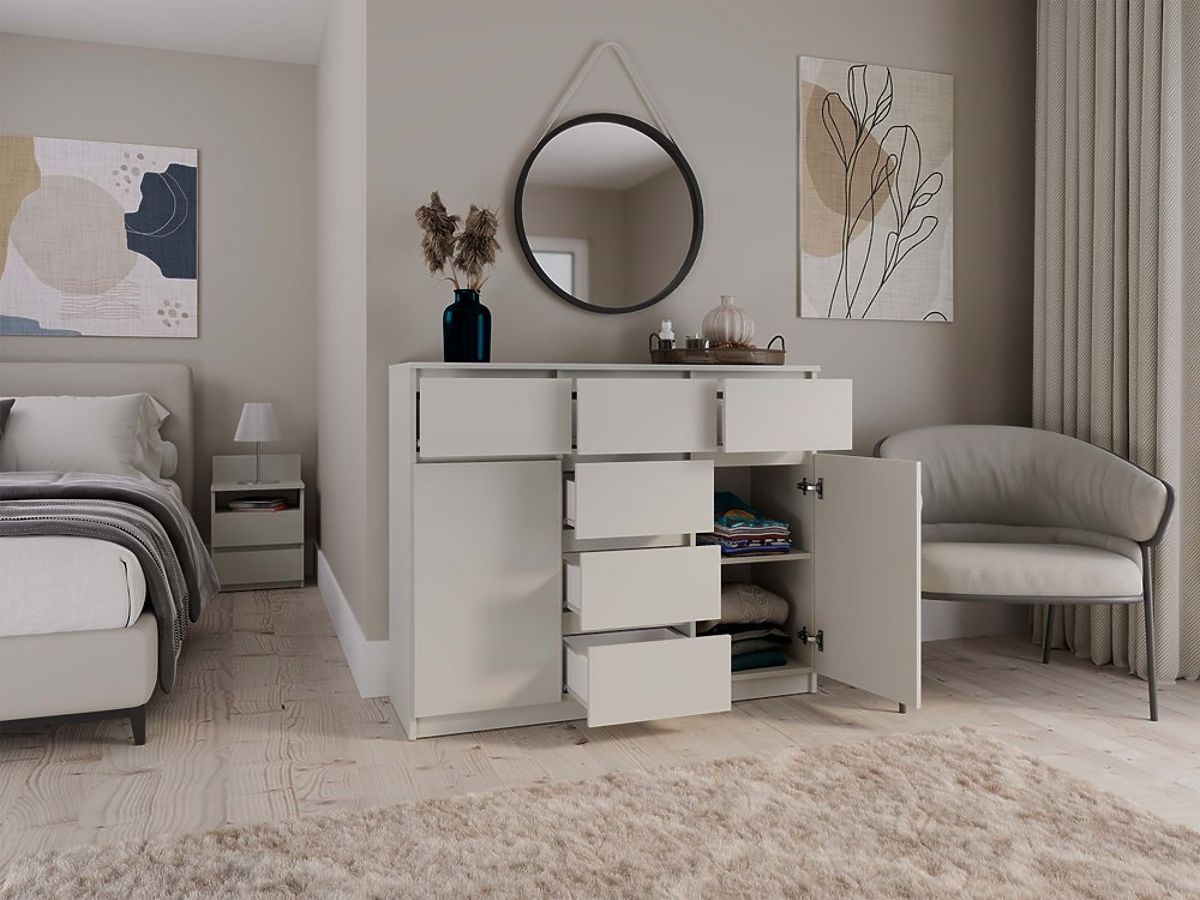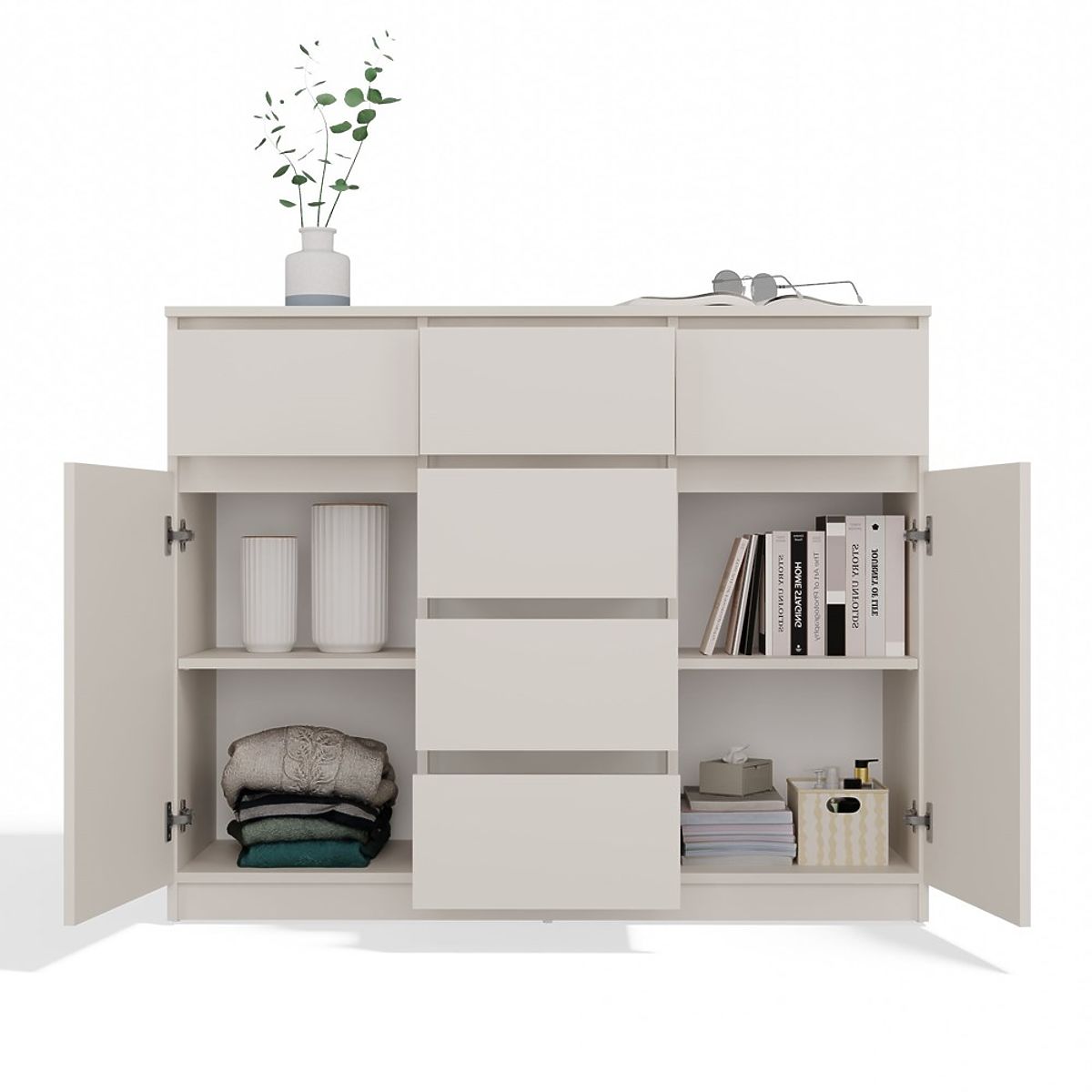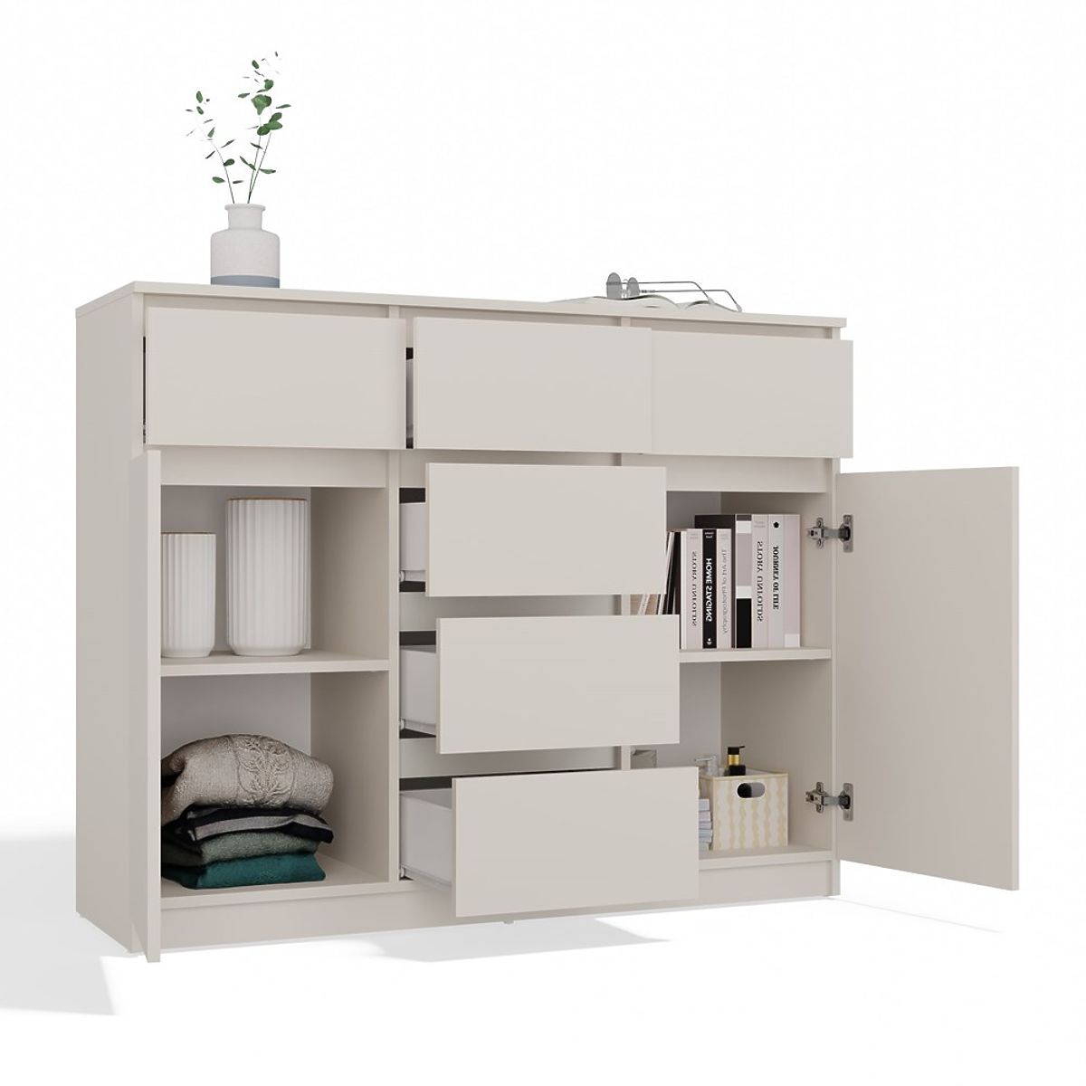 Cassettiera moderna con 2 ante e 6 cassetti spaziosi. .. altro