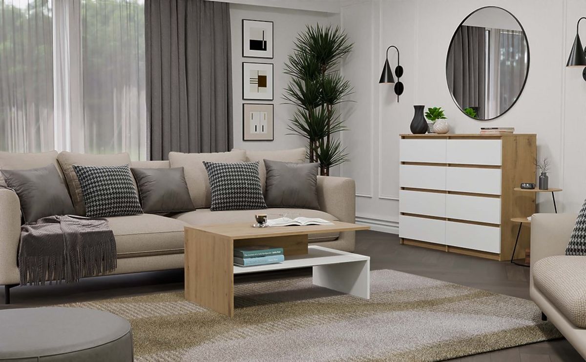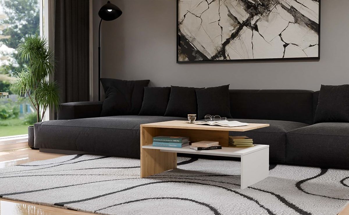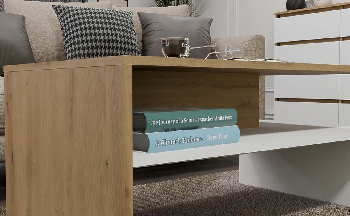 Tavolino da caffè moderno in rovere artigianale e bianco. .. altro