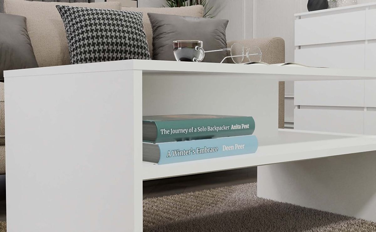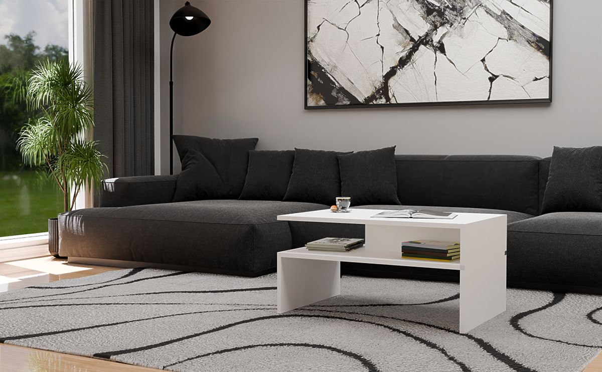 Tavolino moderno bianco in pannello laminato per soggiorno. .. altro
