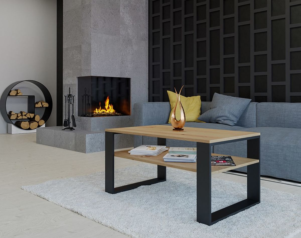 Tavolino moderno in rovere Artisan e nero con ripiano spazioso. .. altro