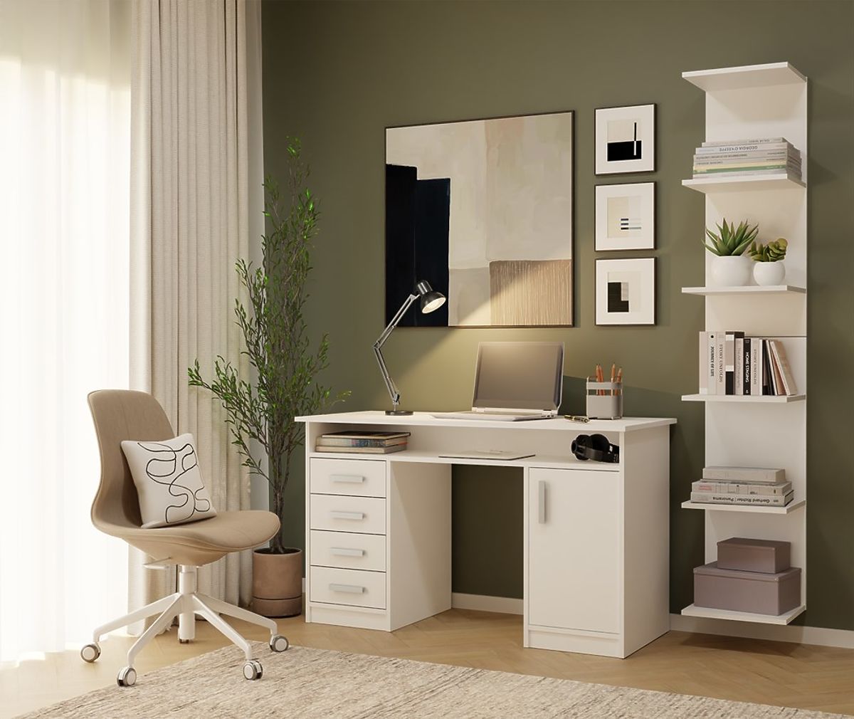 Scaffale alto bianco con 6 ripiani per libri e documenti. .. altro