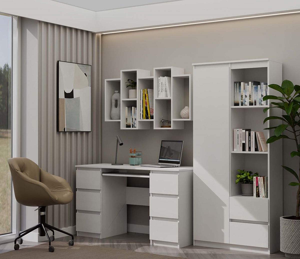 Nel soggiorno, nella stanza dei ragazzi o in ufficio, offre più spazio utile per gli oggetti essenziali o funge da elemento decorativo.