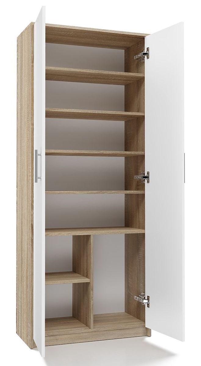 Scaffale chiuso con 8 ripiani pratici e 2 porte in rovere sonoma e bianco opaco. .. altro