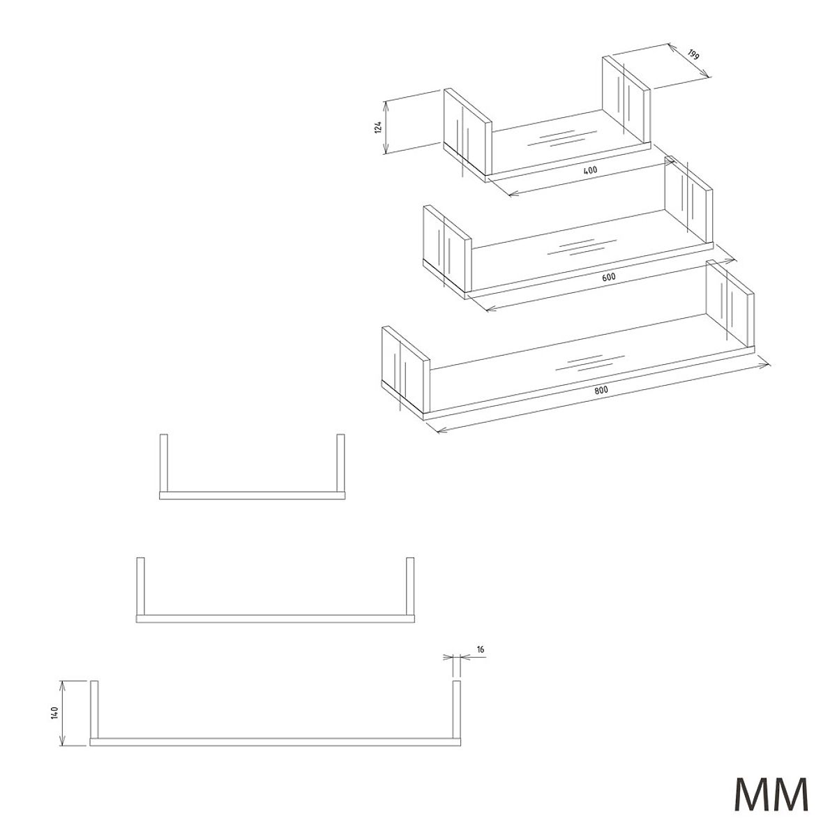 Set di mensole a muro in bianco opaco, modello MOBI 3P. .. altro