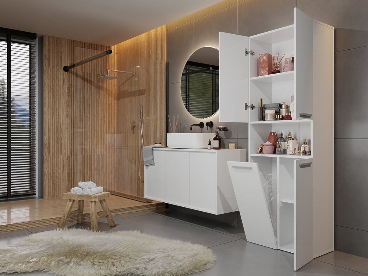 Mobiletto da bagno bianco con ripiani e cestino. .. altro