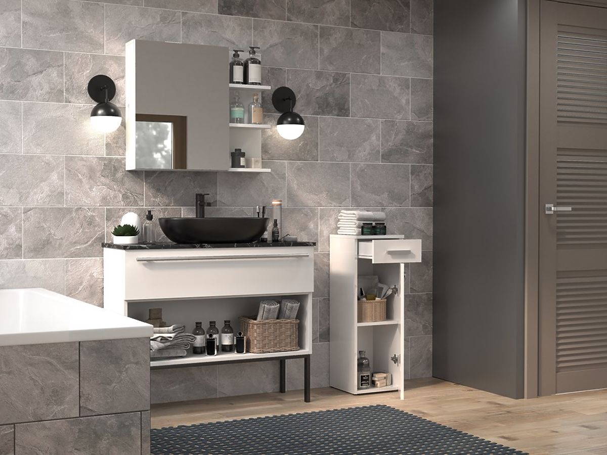 Armadio da bagno con cassetto e porta, bianco lucido. .. altro