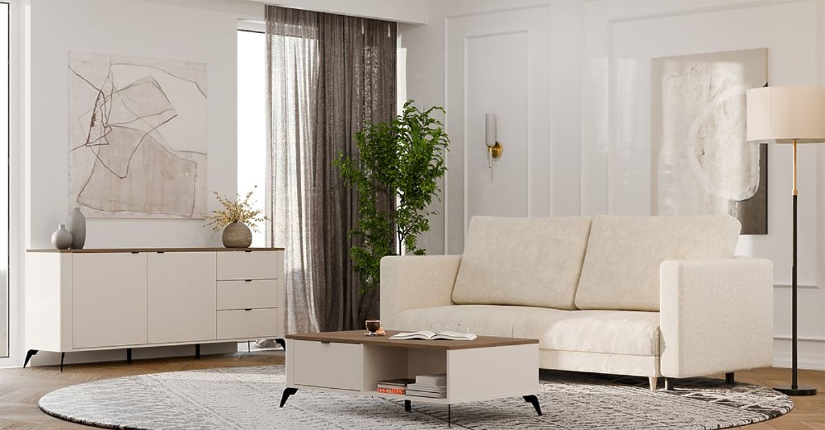 Lukahome.it » Tabelle e tavoli / Conferenza tavoli / Tavolino da caffè CORDOBA Beige Cashmere Rovere Castello 2 Cassetti per Soggiorno
