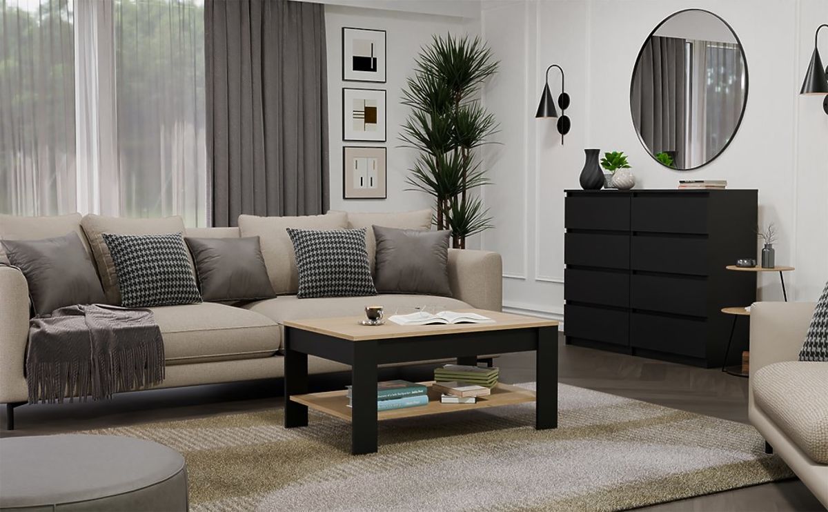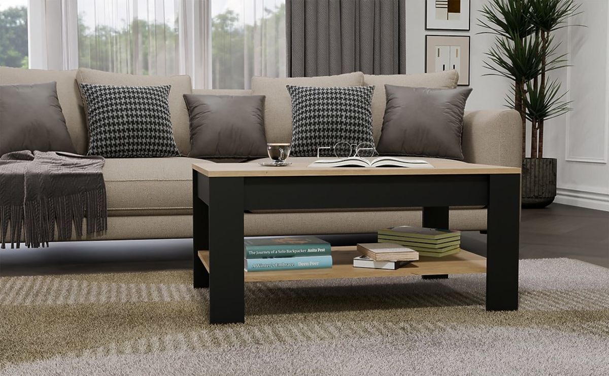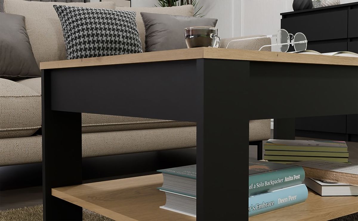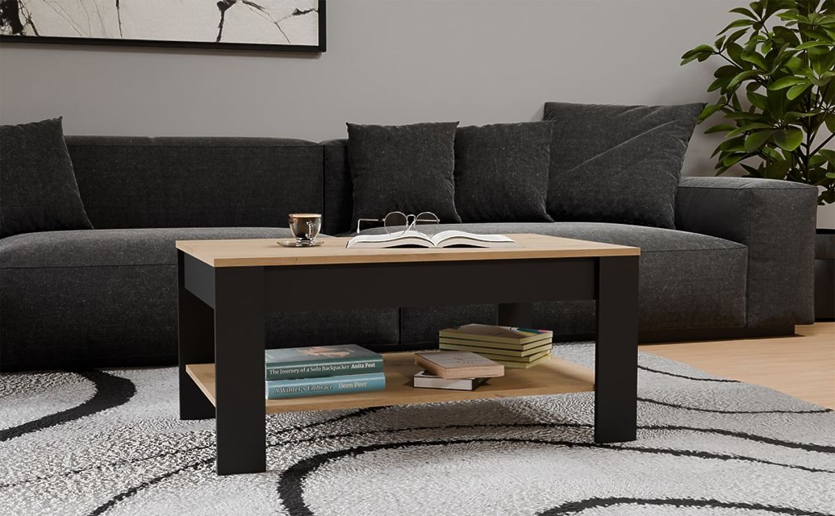 Tavolino moderno OHIO in Rovere Artigiano e Nero con ripiano funzionale. .. altro