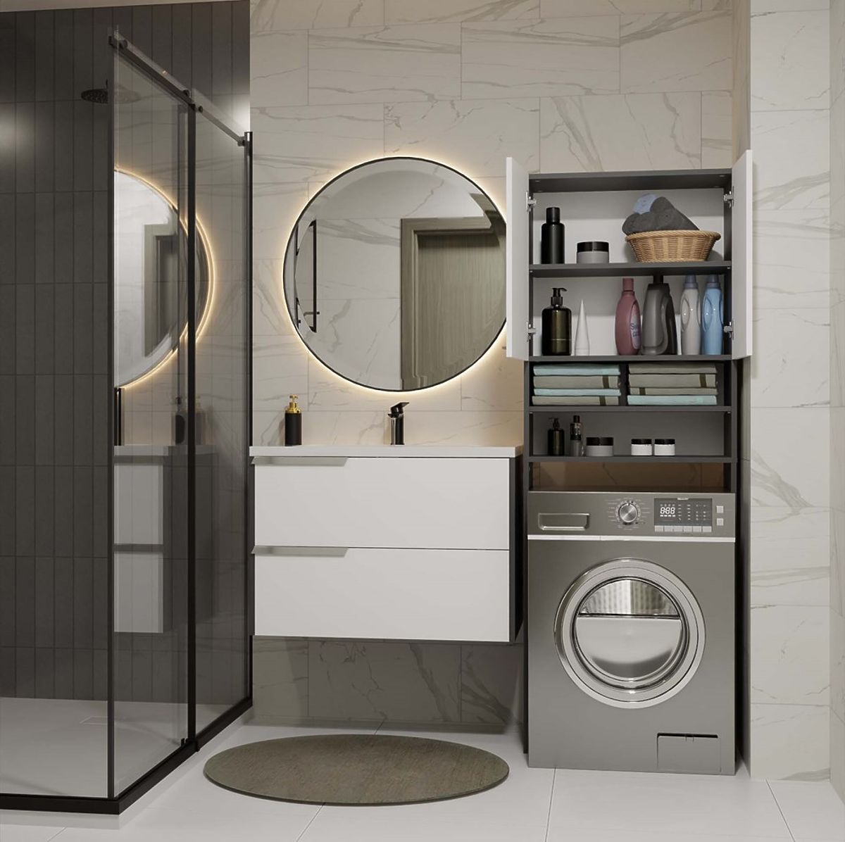 Lukahome.it » Bathroom & Toilet / Bagno armadietti / Armadio da Bagno sopra Lavatrice POLA DK ANTRACITE BIANCO Colonna Scaffale 180X64X30