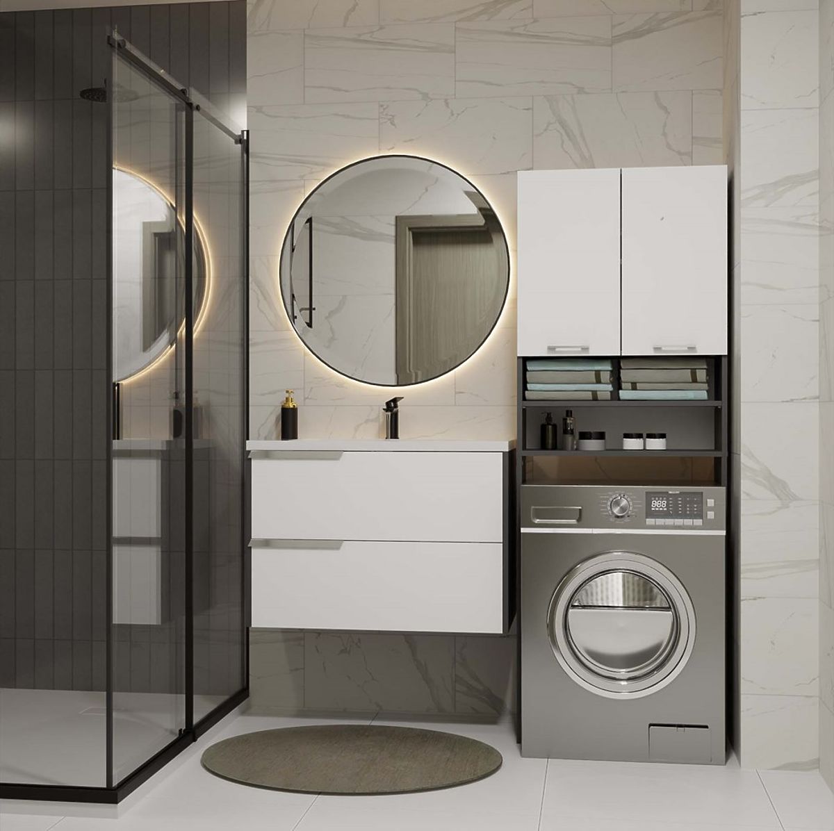 Scaffale moderno sopra lavatrice con 4 ripiani, 2 nascosti. .. altro