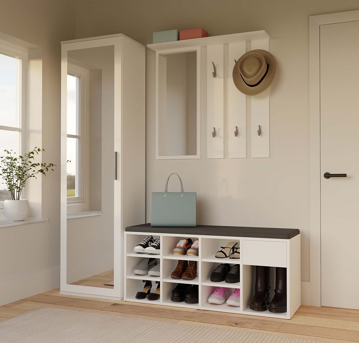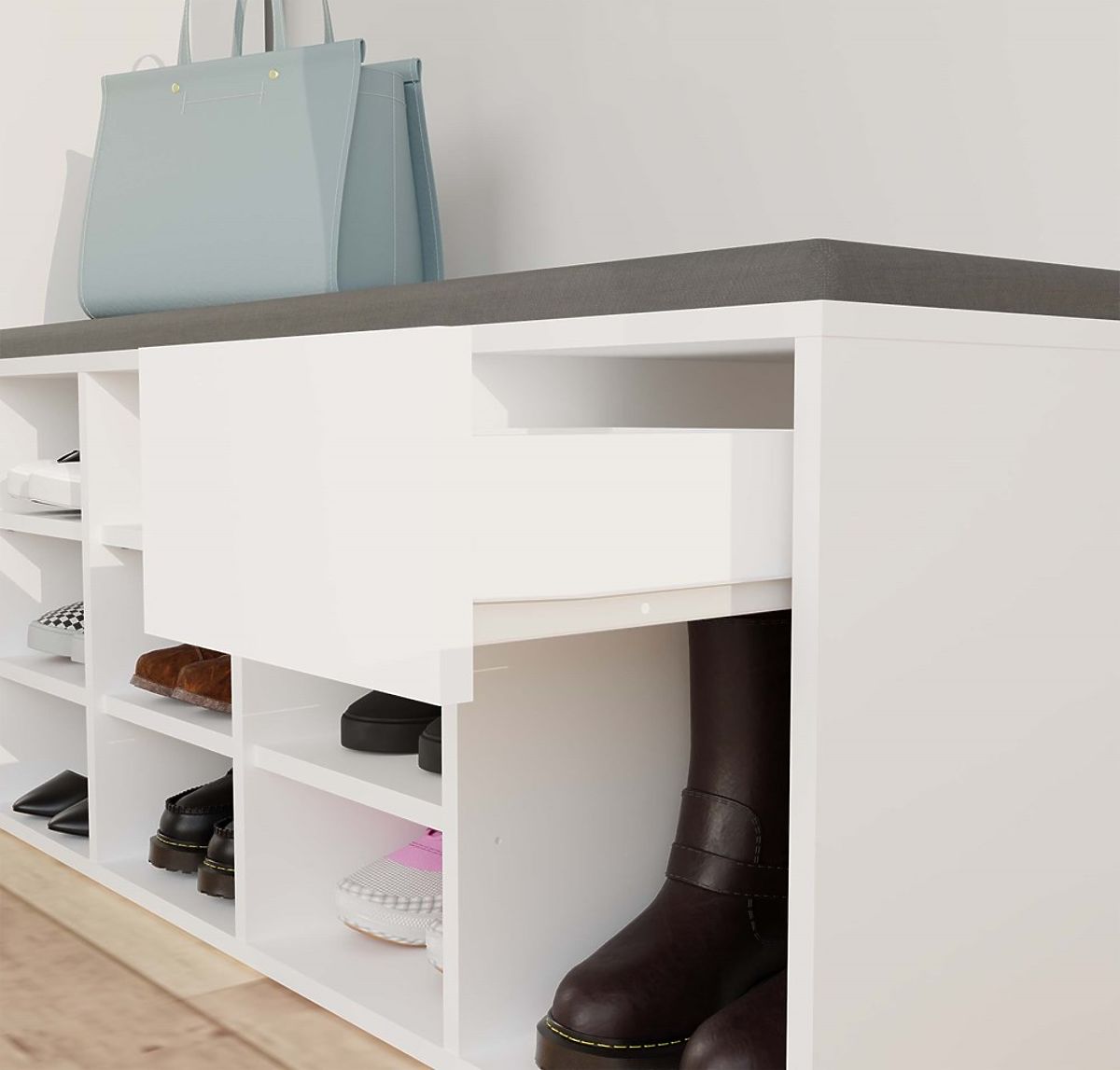 Armadio per scarpe con seduta e ampio spazio di stoccaggio. .. altro
