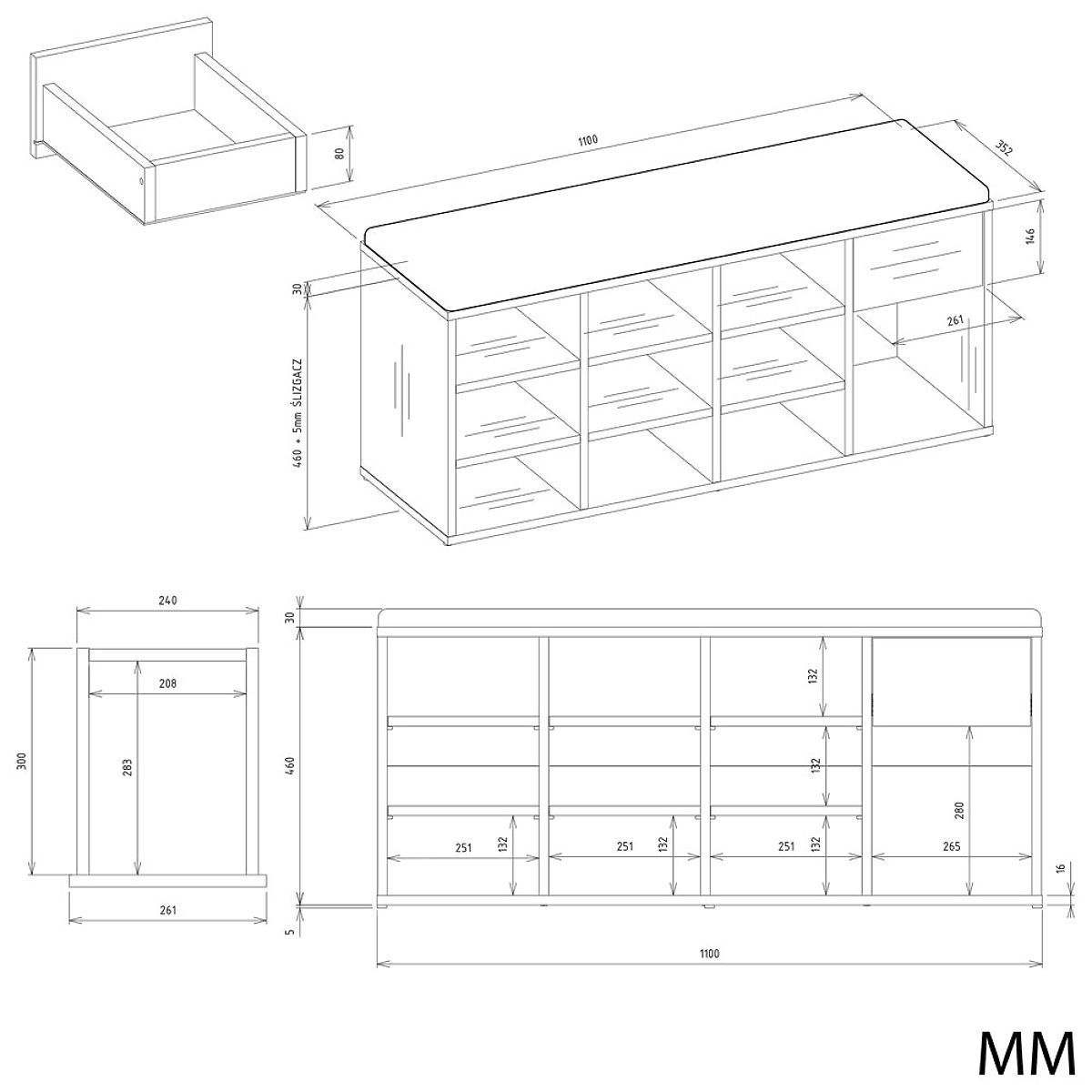 Armadio per scarpe TALLIN con seduta e cassetto. .. altro