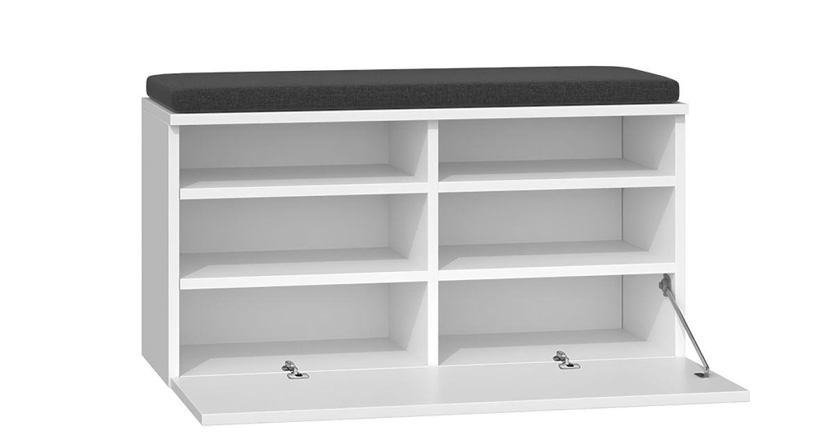 Scarpiera moderna con panchina e spazio di archiviazione. .. altro