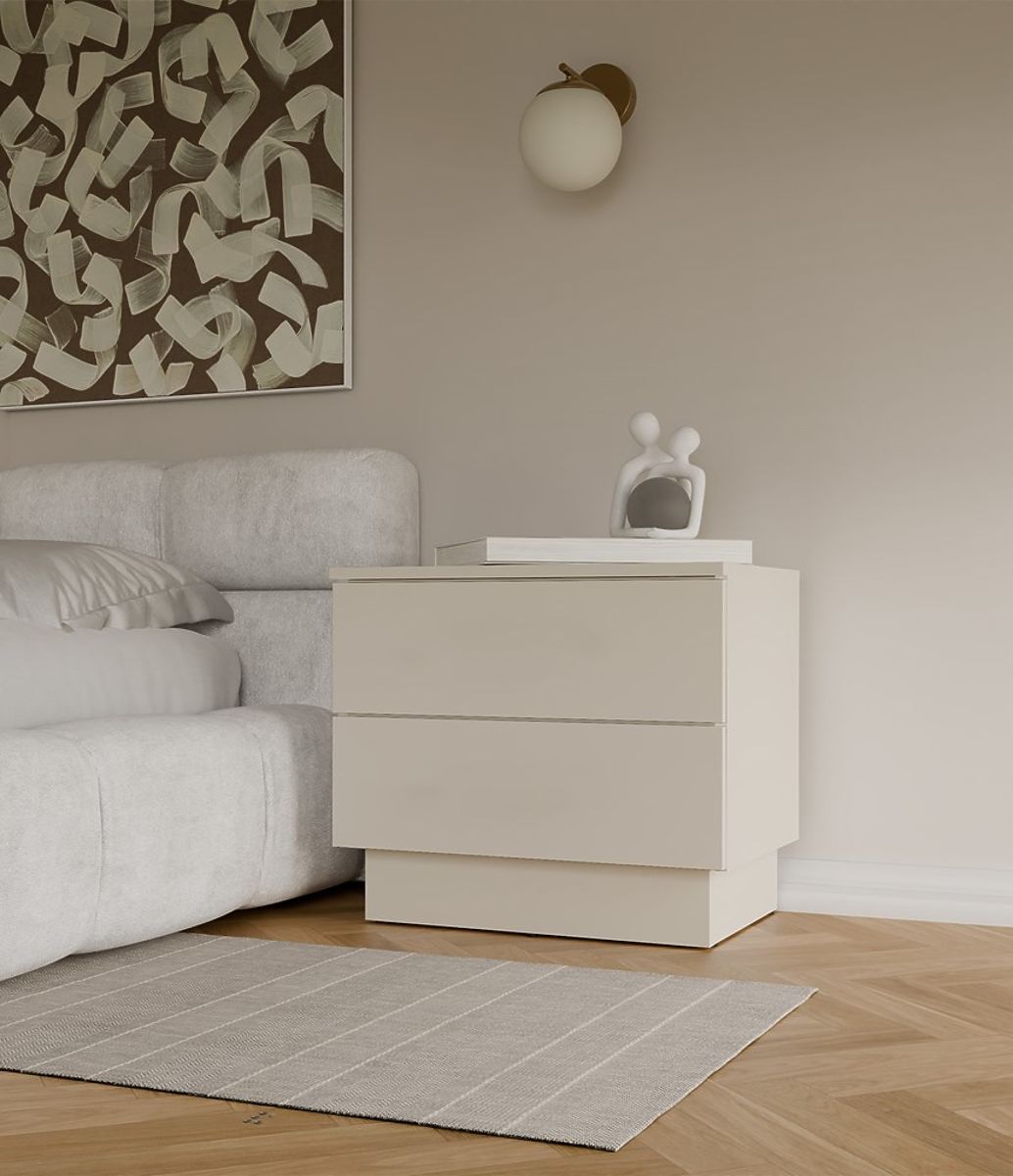 Lukahome.it » Tabelle e tavoli / Notte tavoli / Comodino AMBER 2S con 2 cassetti per camera da letto CASHMERE Beige