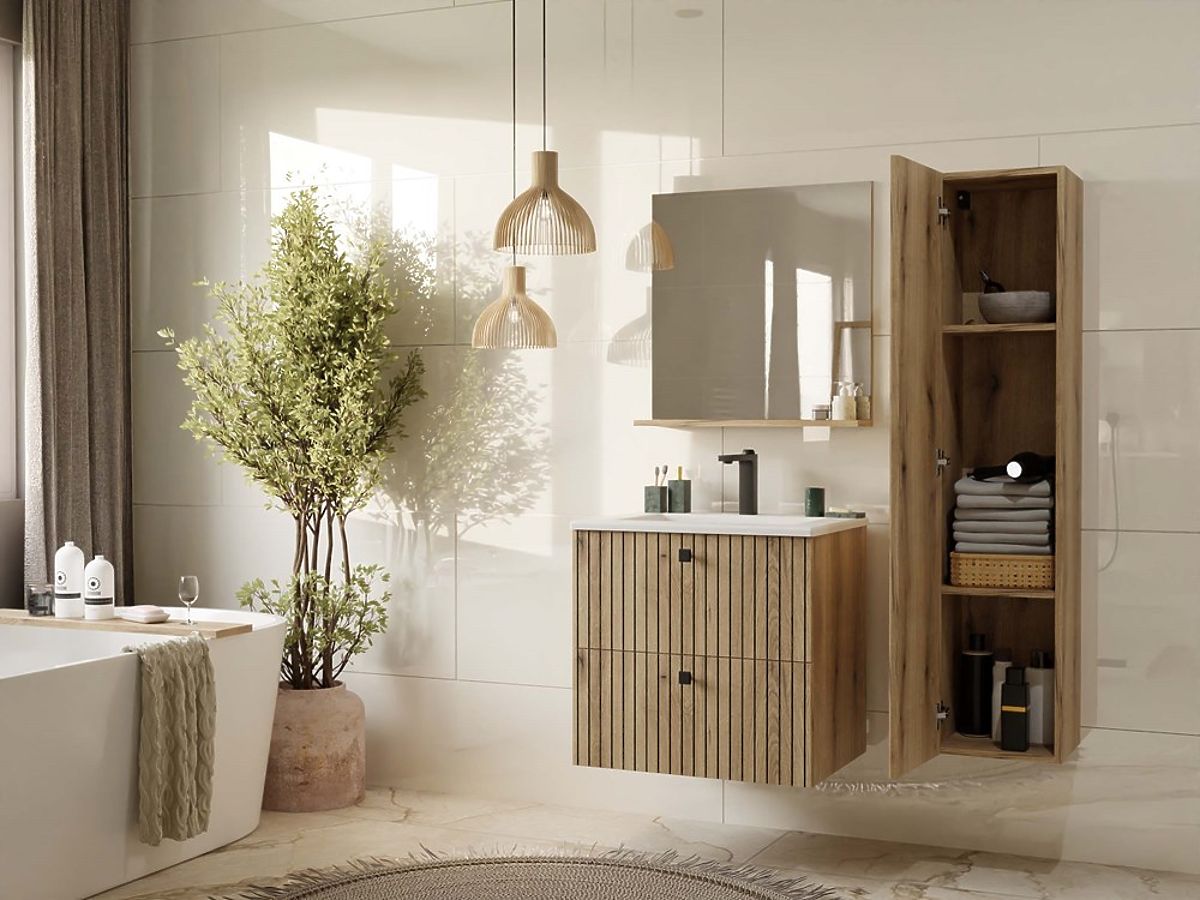 Lukahome.it » Bathroom & Toilet / Bagno armadietti / ARMADIETTO SOTTO LAVABO TIGO 60 2S ROVERE EVOKE PANNELLO FRONTALE SCANALATO + LAVABO