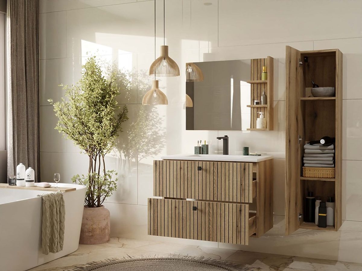 Lukahome.it » Bathroom & Toilet / Bagno armadietti / MOBILETTO SOTTO LAVABO TIGO 80 2S ROVERE EVOKE SCANALATO FRONTALE + LAVABO