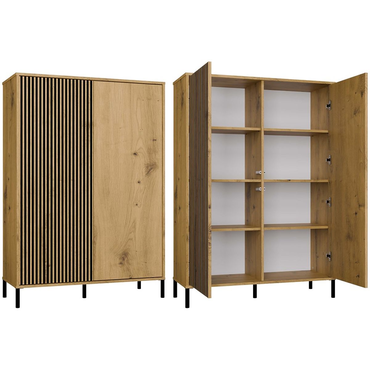 COLORE:La vetrina KAMARO 2DD SLIM/LISCIO ROVERE ARTIGIANO è una combinazione di estetica e funzionalità, perfetta per il soggiorno, la camera degli ospiti, la camera da letto o l'ufficio. La combinazione di porte con frontale liscio e porte con frontale scanalato che ricorda le lamelle conferisce carattere, mentre il sistema TIP-ON consente un utilizzo comodo senza maniglie. Il mobile offre ampio spazio di archiviazione ed è un elemento stiloso in un interno moderno.