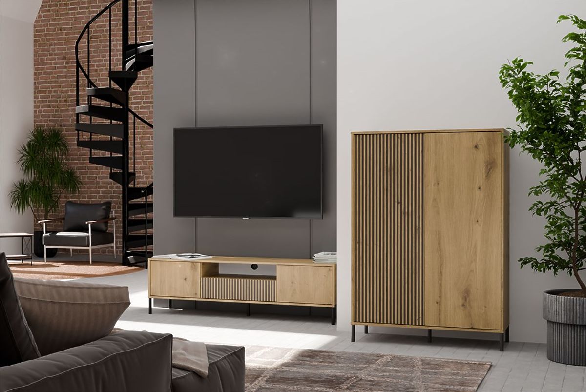 Lukahome.it » Mobilia / Cassettiere / Vetrina KAMARO 2DD SLIM/LISCIO ROVERE ARTIGIANO Frontale Lamellare Scanalato + Classico