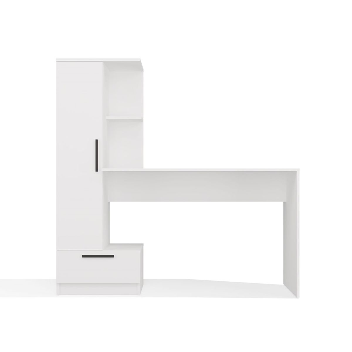 La scrivania COSMO è la scelta ideale per chi apprezza l'ergonomia, lo stile moderno e l'ordine sul posto di lavoro o durante lo studio. Lo scaffale funzionale e l'ampia superficie di lavoro consentono di creare facilmente una zona confortevole per l'attività – anche in una stanza piccola.