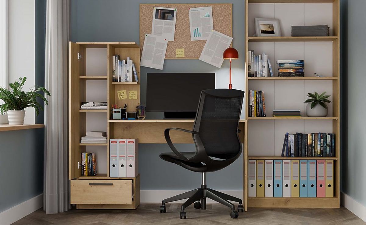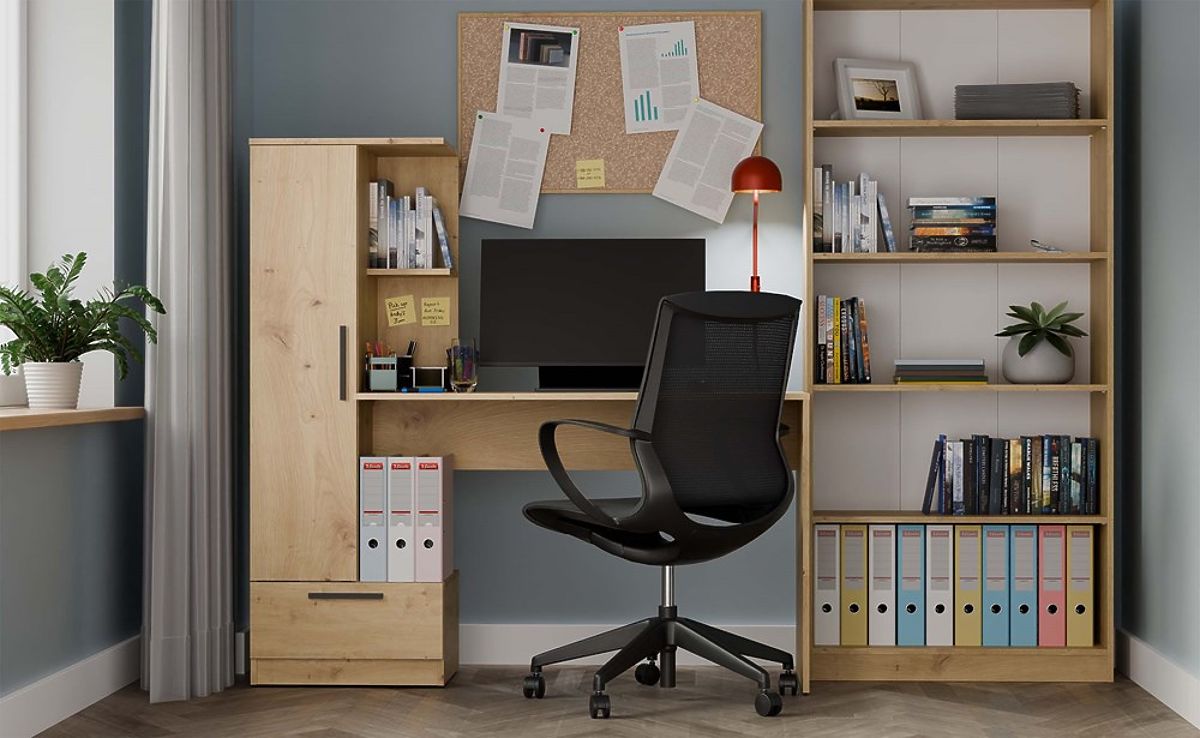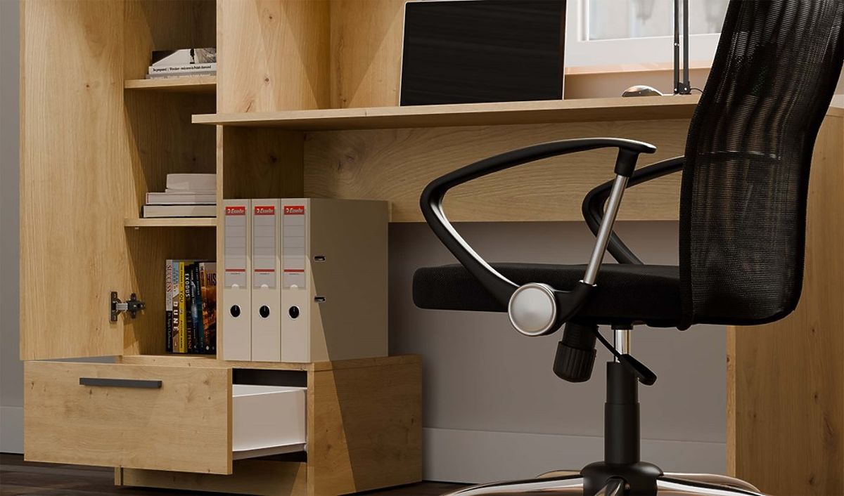 La scrivania COSMO è la scelta ideale per chi apprezza l'ergonomia, lo stile moderno e l'ordine nello spazio di lavoro o studio. Lo scaffale funzionale e l'ampia superficie di lavoro permettono di creare facilmente una zona di lavoro confortevole – anche in una stanza piccola.