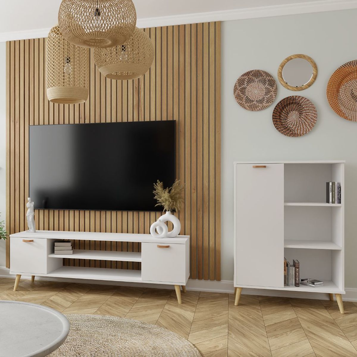 L'armadio FONDI è un mobile estremamente pratico che combina semplicità con un'estetica ispirata allo stile scandinavo. Grazie al design elegante, si adatta perfettamente agli interni moderni, aggiungendo leggerezza e freschezza. I suoi spaziosi ripiani permettono di esporre decorazioni preferite, libri o fotografie, consentendo la personalizzazione degli interni e l'aggiunta di un carattere unico. Gli spazi di stoccaggio pratici aiutano a mantenere l'ordine e offrono spazio per riporre vari oggetti.