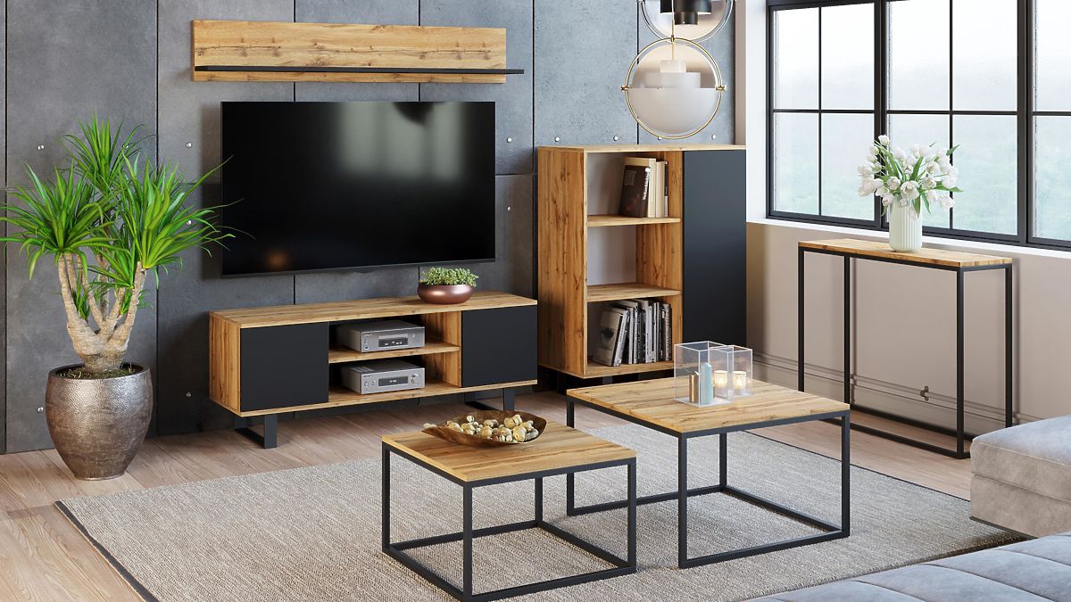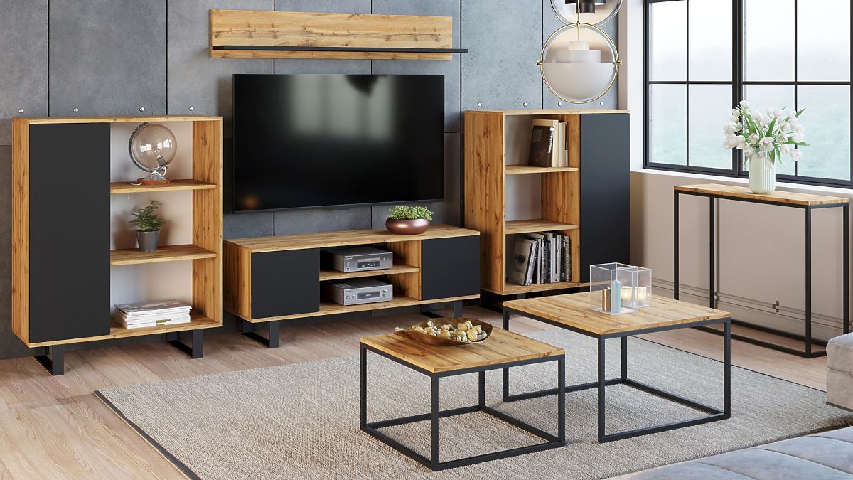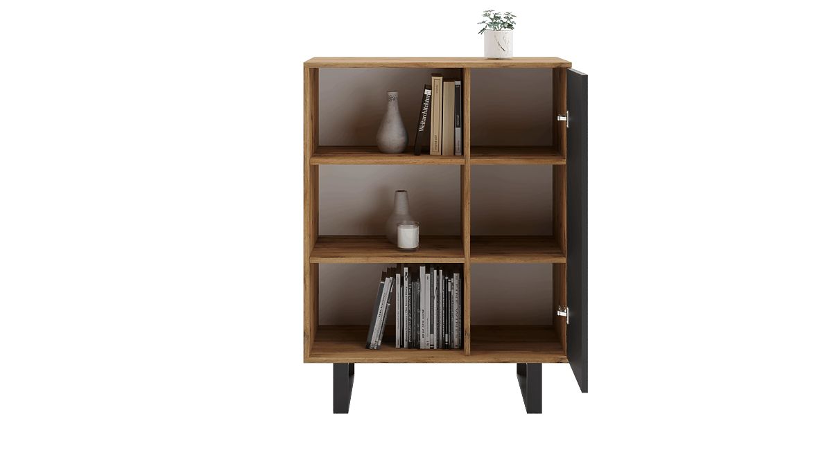 L'armadio FONDI è un mobile estremamente funzionale per il tuo soggiorno, che combina semplicità con un aspetto accattivante ispirato allo stile loft. Grazie alle forme minimaliste e ai materiali grezzi, come elementi metallici e legno, l'armadio porta un'atmosfera e un carattere unici all'interno. È la soluzione ideale per chi apprezza praticità e design moderno in uno. L'armadio FONDI è sia funzionale che estetico, offre spazio per la conservazione e la possibilità di esporre decorazioni preferite.