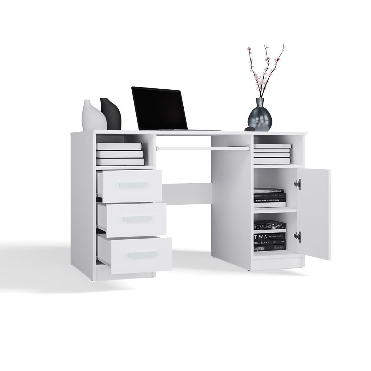 SCRIVANIA DELTA BIANCA 120 cm 3 Cassetti Armadietto Ripiano per Ufficio Stanza per Laptop