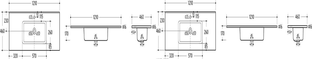 Lavabo rettangolare da mobile in ceramica bianco lucido 120 cm. .. altro