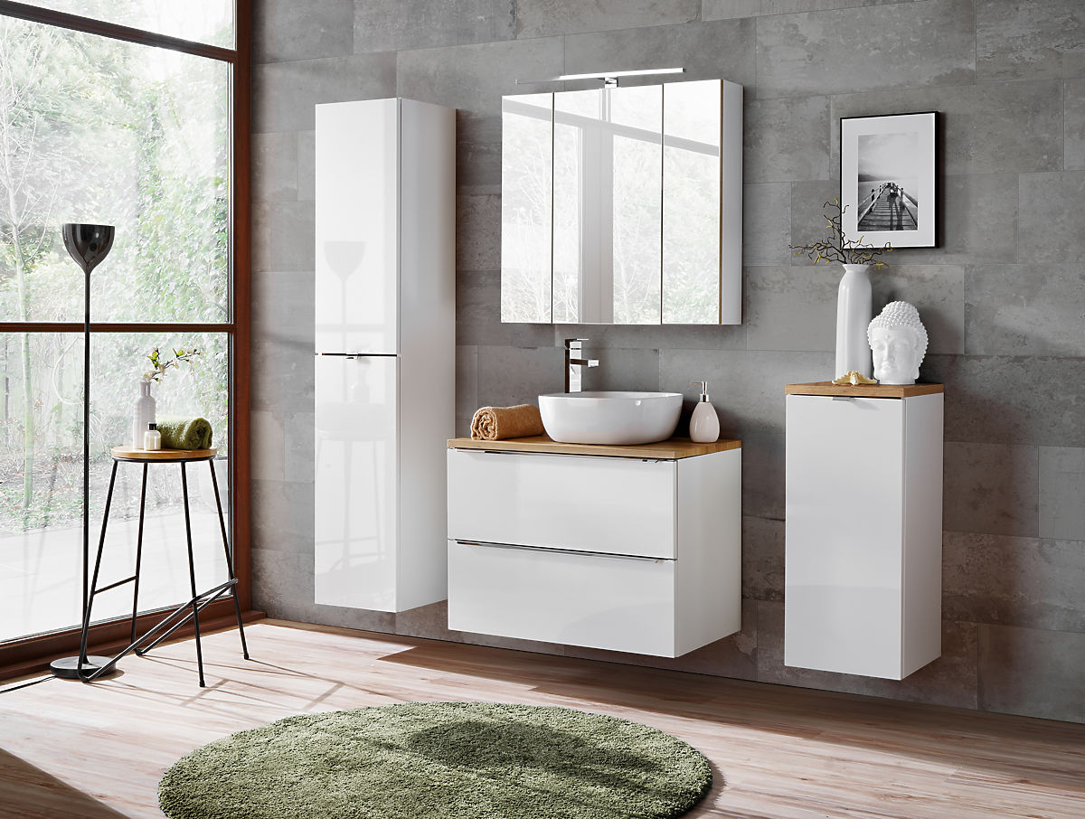 Mobiletto da bagno sospeso con due cassetti in bianco lucido. .. altro