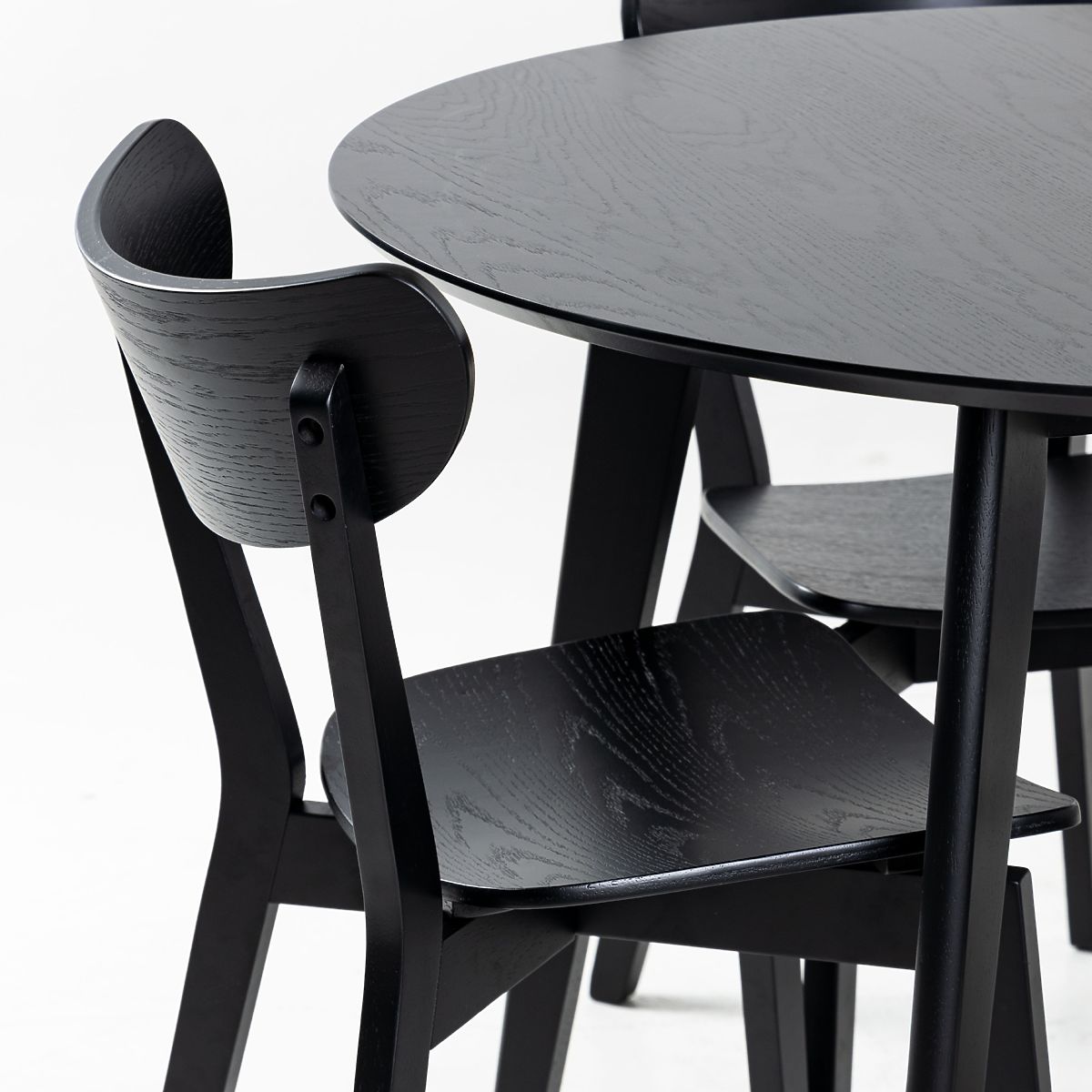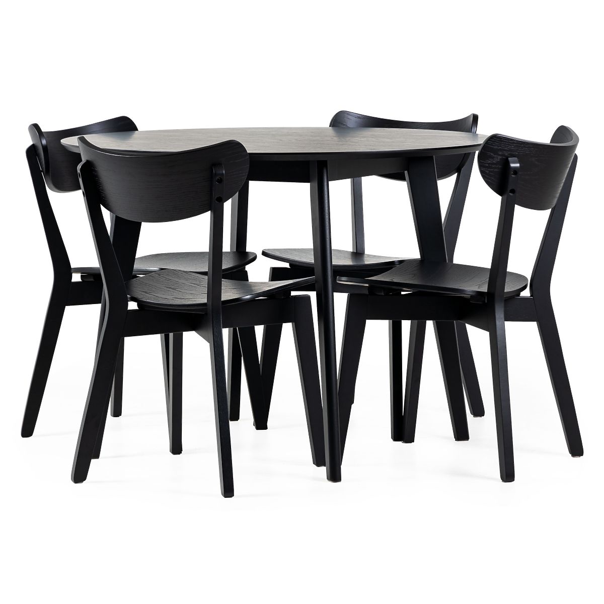 Set da pranzo Roxby con tavolo rotondo e sedie nere. .. altro