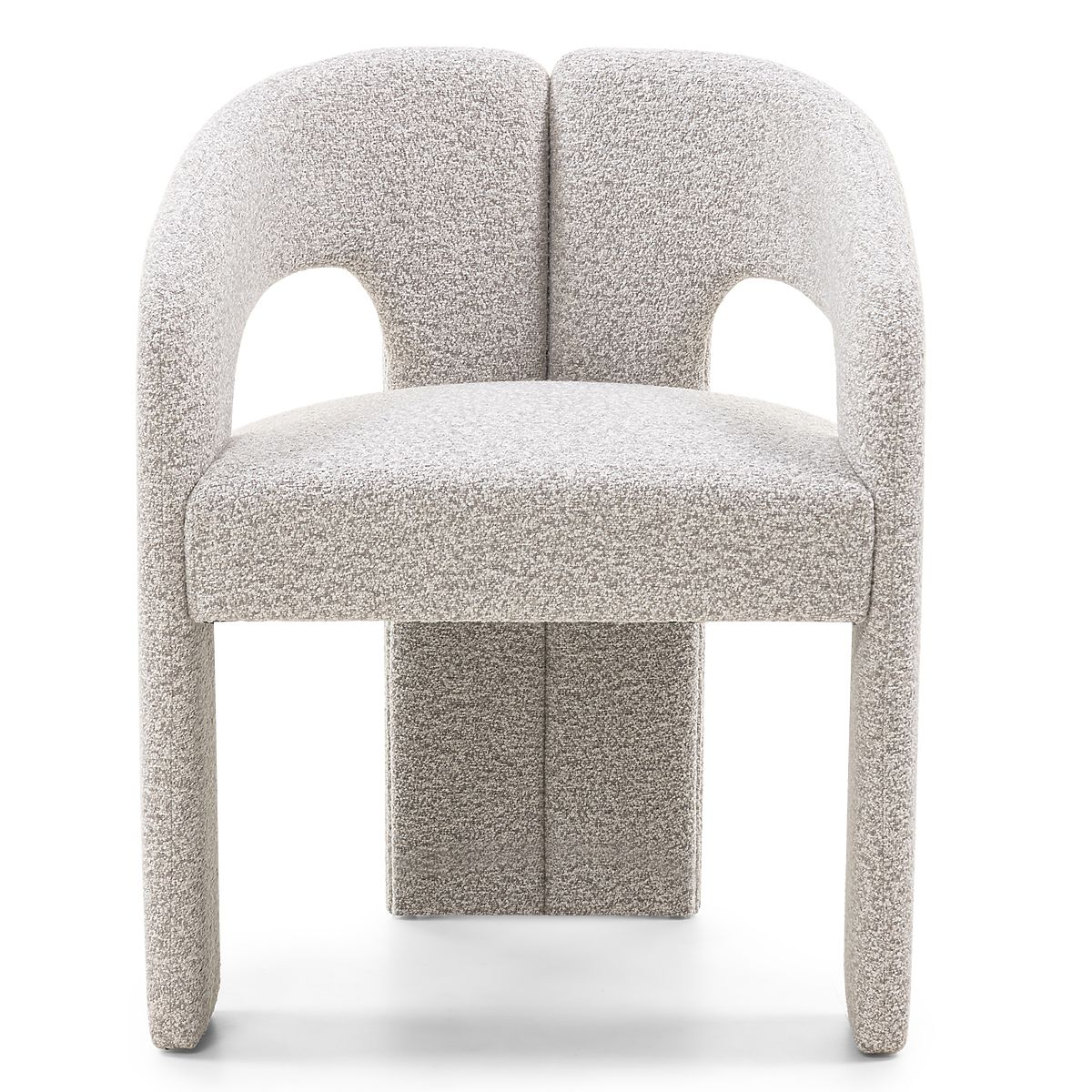 Sedia imbottita Castelo con tessuto grigio-beige e forme arrotondate. .. altro