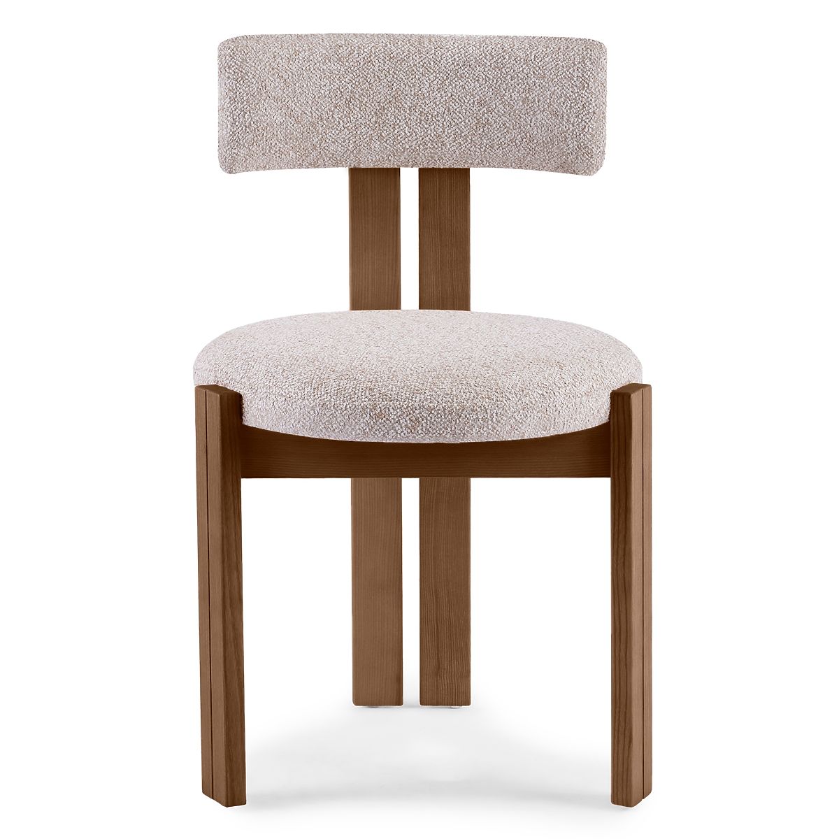 Sedia da pranzo moderna con rivestimento beige-crema e gambe in legno di frassino. .. altro