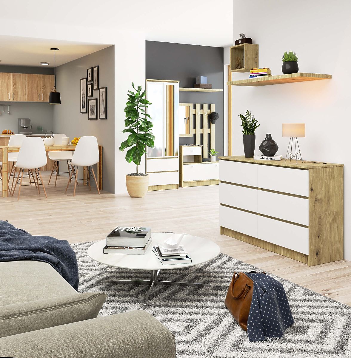 Comò con 6 cassetti in rovere Artisan e bianco, dimensioni 120x77x40 cm. .. altro