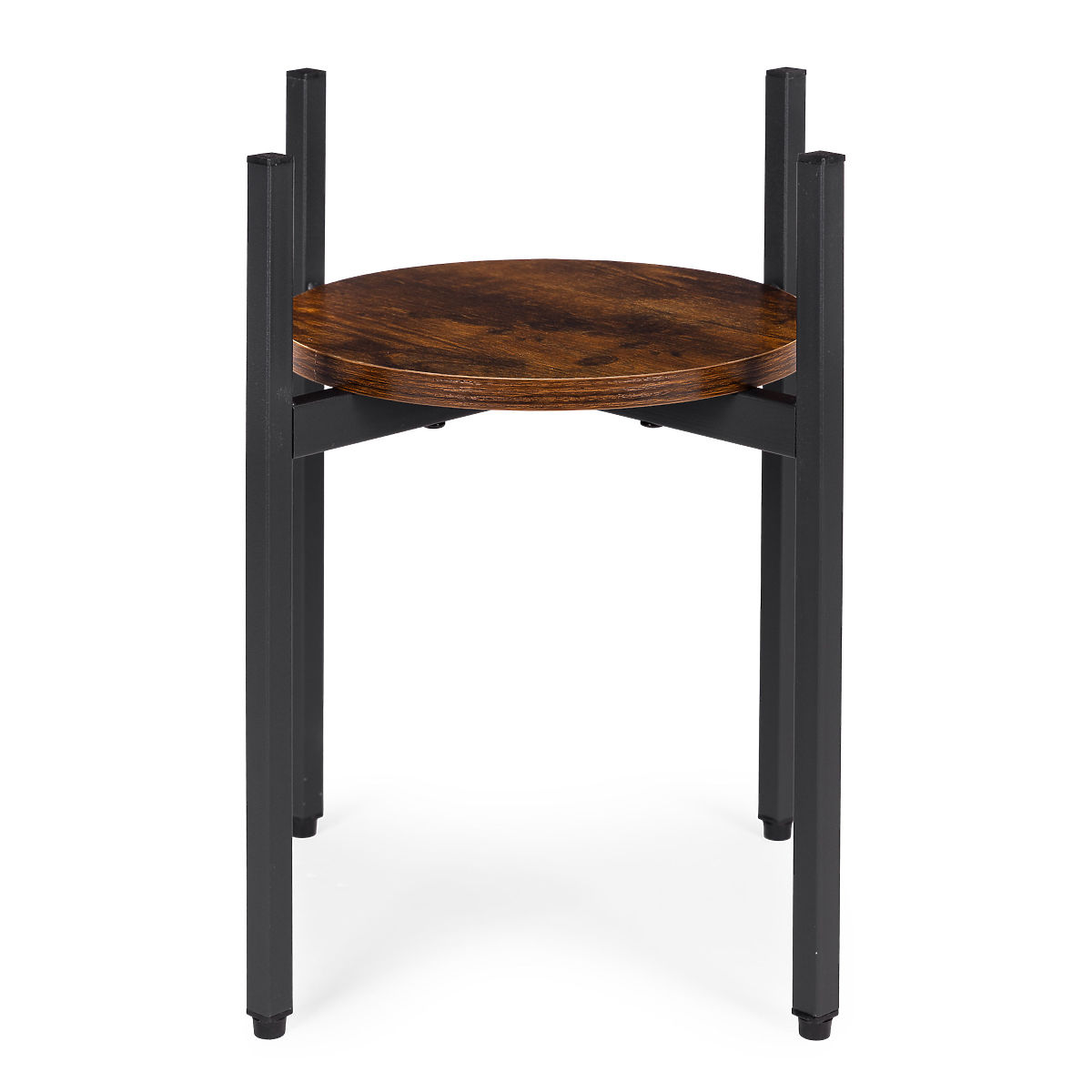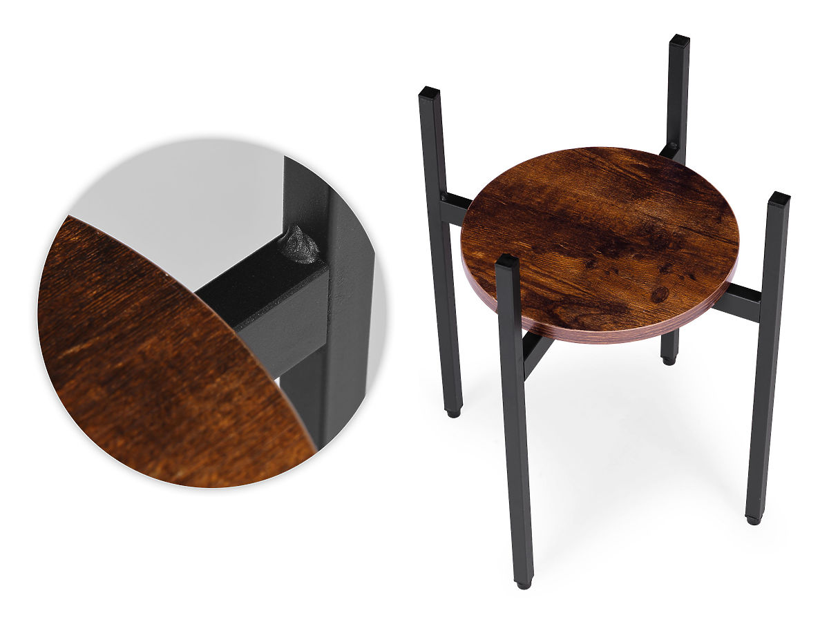 MATERIALI RESISTENTIIl portafiori è realizzato in acciaio con rivestimento a polvere, garantendo resistenza alla corrosione e ai danni meccanici. Il ripiano in truciolato è rifinito in colore che imita il legno naturale, sottolineando il carattere decorativo e loft del mobile.