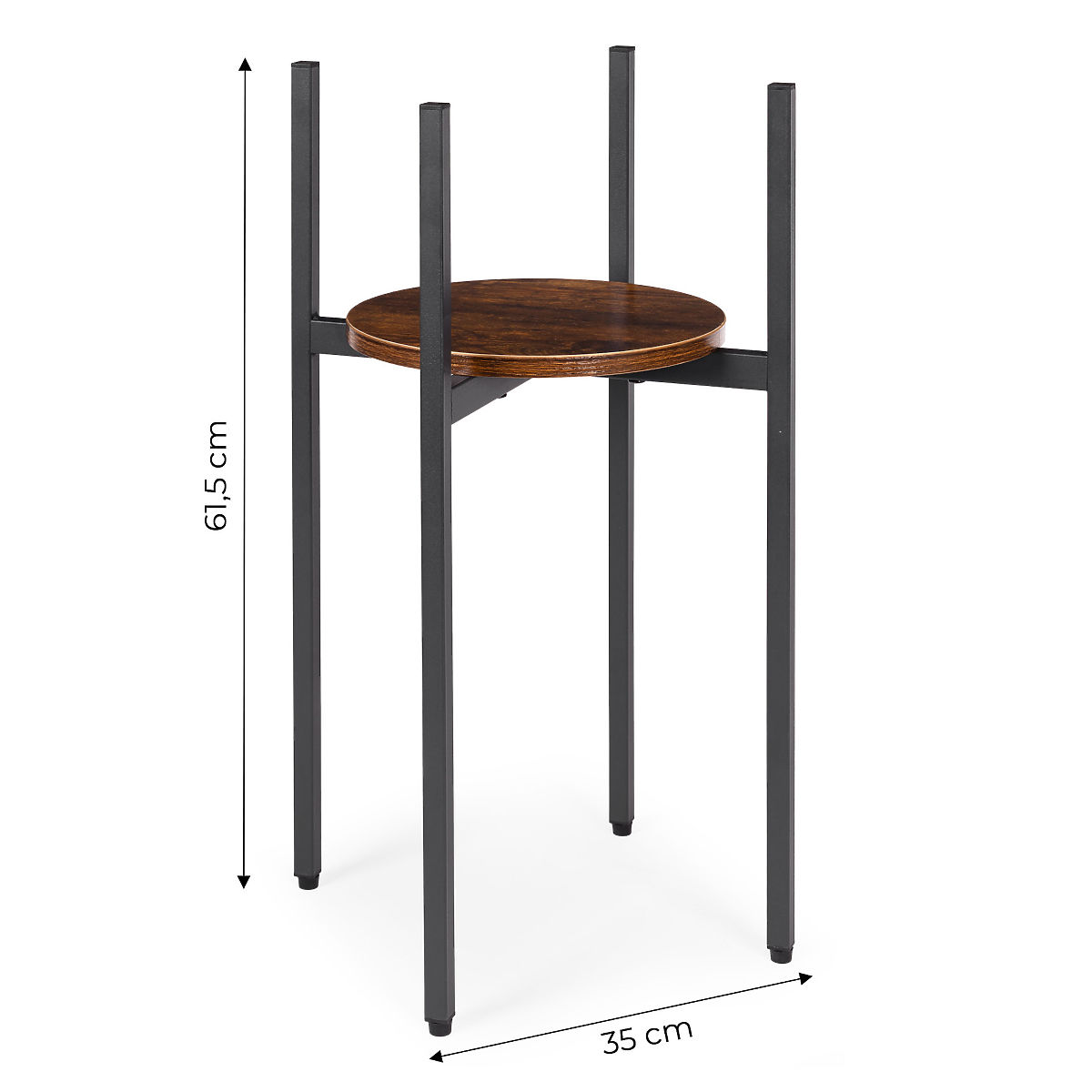 MATERIALI RESISTENTIIl supporto per piante è realizzato in acciaio verniciato a polvere, garantendo resistenza alla corrosione e ai danni meccanici. Il ripiano in truciolato è rifinito in colore che imita il legno naturale, sottolineando il carattere decorativo e loft del mobile.