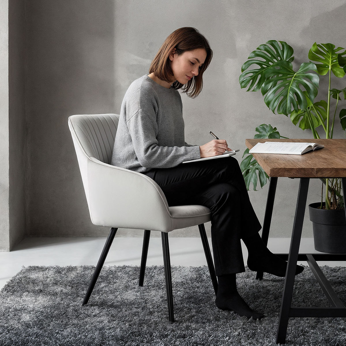 Le sedie in velluto sono una combinazione di eleganza e comfort, adatte sia agli interni moderni che classici. Il morbido rivestimento conferisce loro un carattere accogliente e la forma semplice garantisce un utilizzo universale. Sono un complemento stiloso e pratico per la sala da pranzo, il soggiorno o lo spazio ufficio.