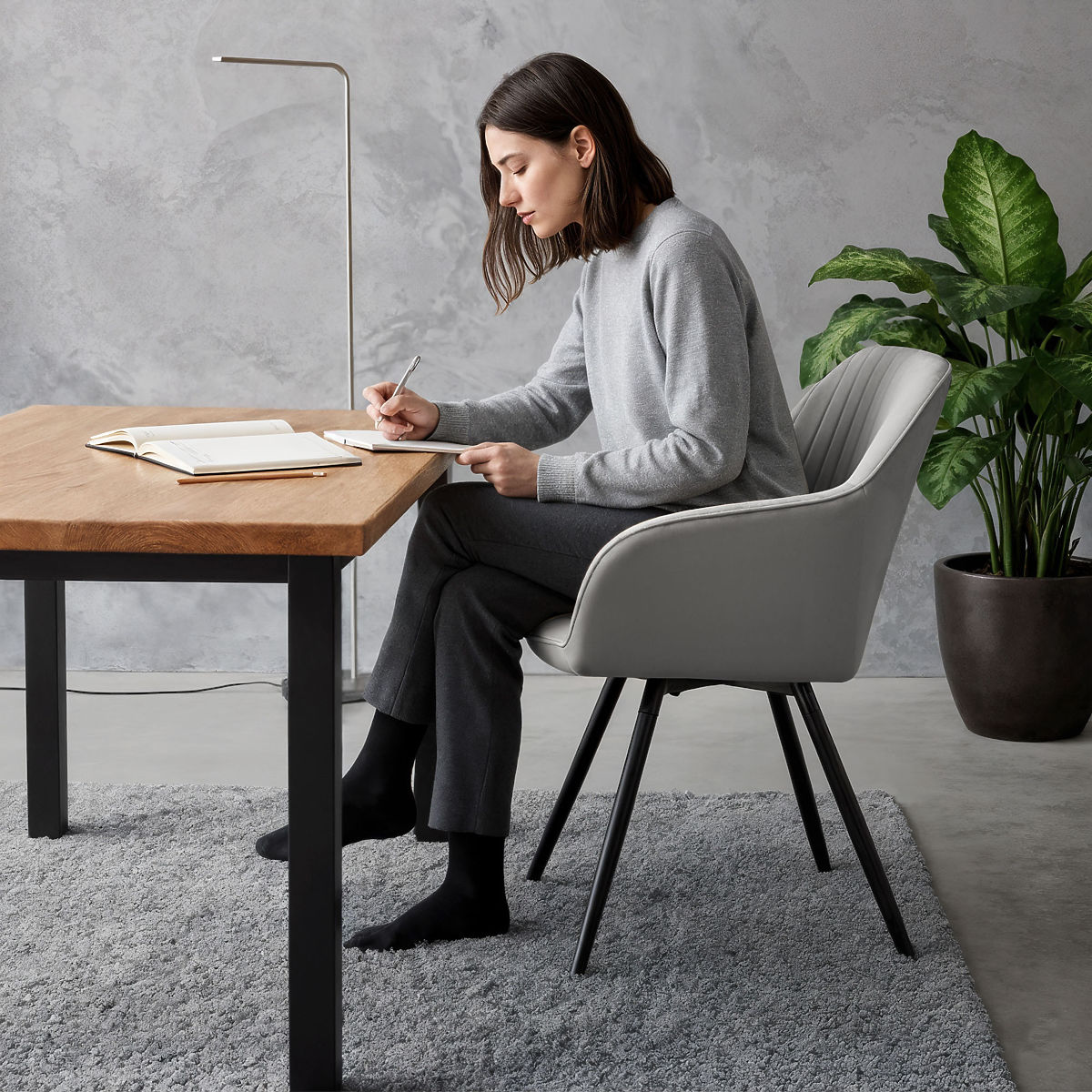 Sedia girevole TURNO è destinata agli amanti delle soluzioni moderne, intelligenti e pratiche. La sedia ruota a 360°, garantendo un comfort eccezionale durante l'uso. È particolarmente efficace in spazi piccoli - non è necessario spostarla, il che significa che occupa meno spazio rispetto a una sedia normale. Il comfort di seduta è assicurato dal rivestimento elegante in velluto con cuciture verticali e dall'imbottitura in schiuma ad alta densità. La sedia girevole TURNO si adatta perfettamente agli interni in stile industriale, moderno o mid-century modern.